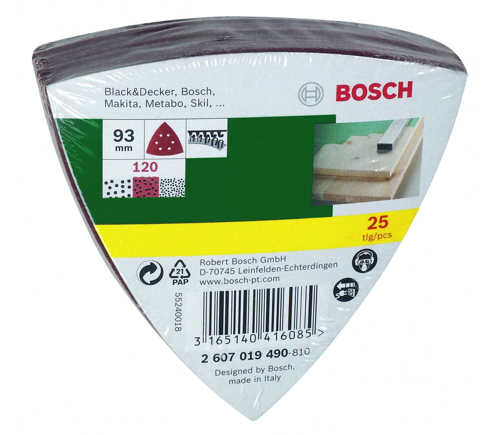 - Handige afmeting van 93 x 115 mm voor gebruik met handschuurmachine.