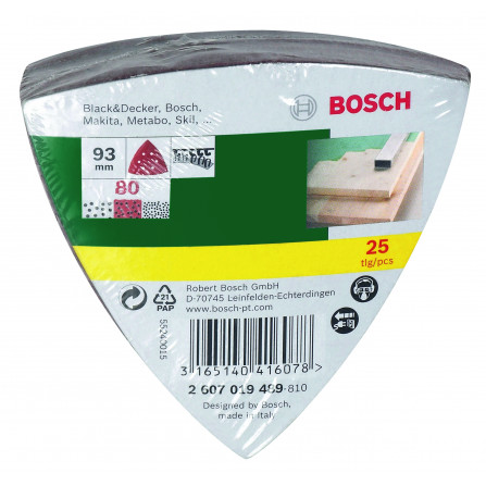 Bosch šlifavimo popierių rinkinys, 93 x 115 mm, 80 grūdėtumas, 25 vnt.