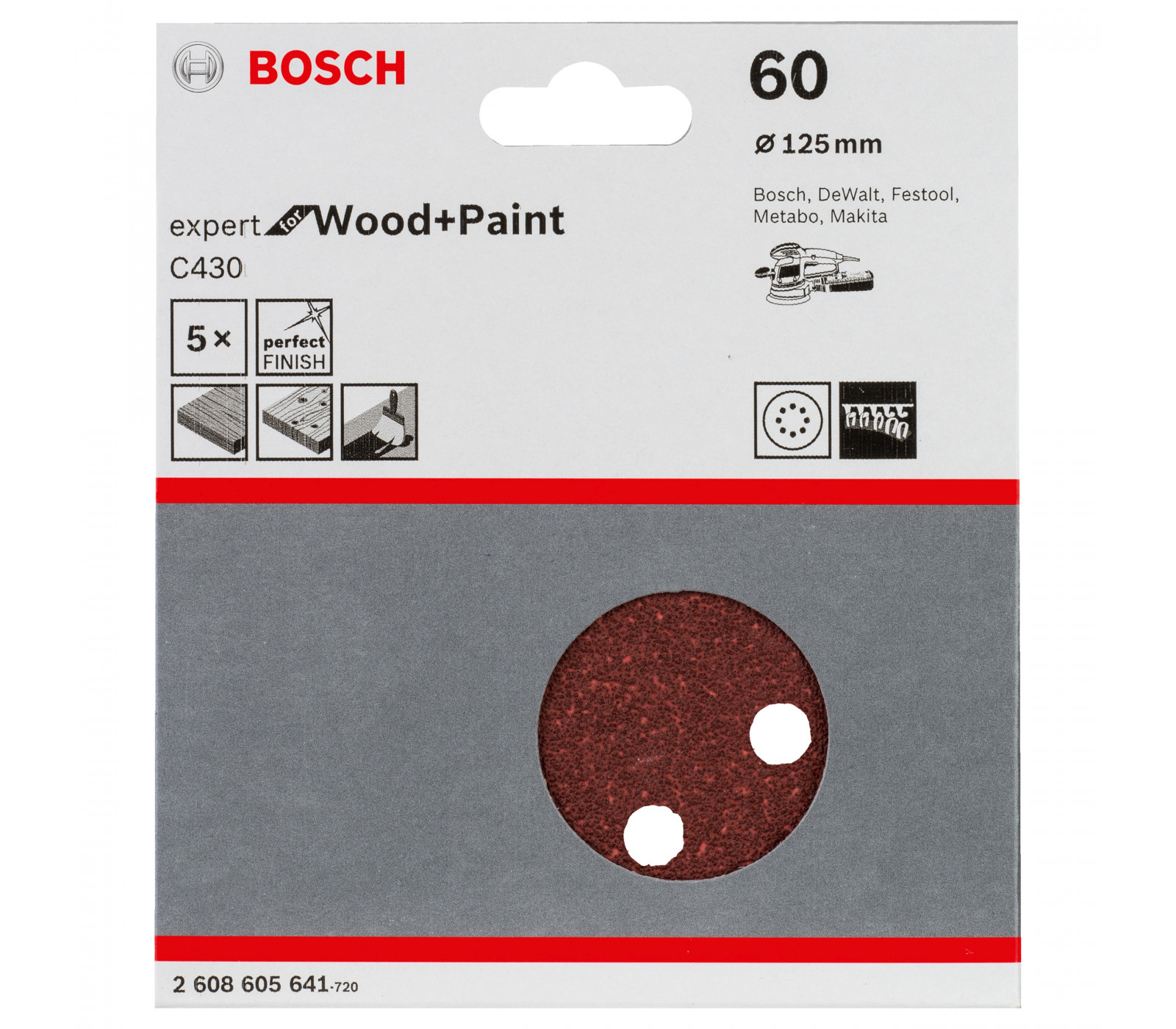 Bosch šlifavimo popierius C430, 125 mm, 60 grūdėtumas, 5 vnt.