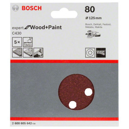 De Bosch schuurpapier C430 met een korrel van 80 en een diameter van 125 mm, verpakt in een set van 5, biedt een goede balans tussen schuurkracht en gebruiksgemak. Gebruikers waarderen de duurzaamheid en effectiviteit van het product voor verschillende schuurklussen.