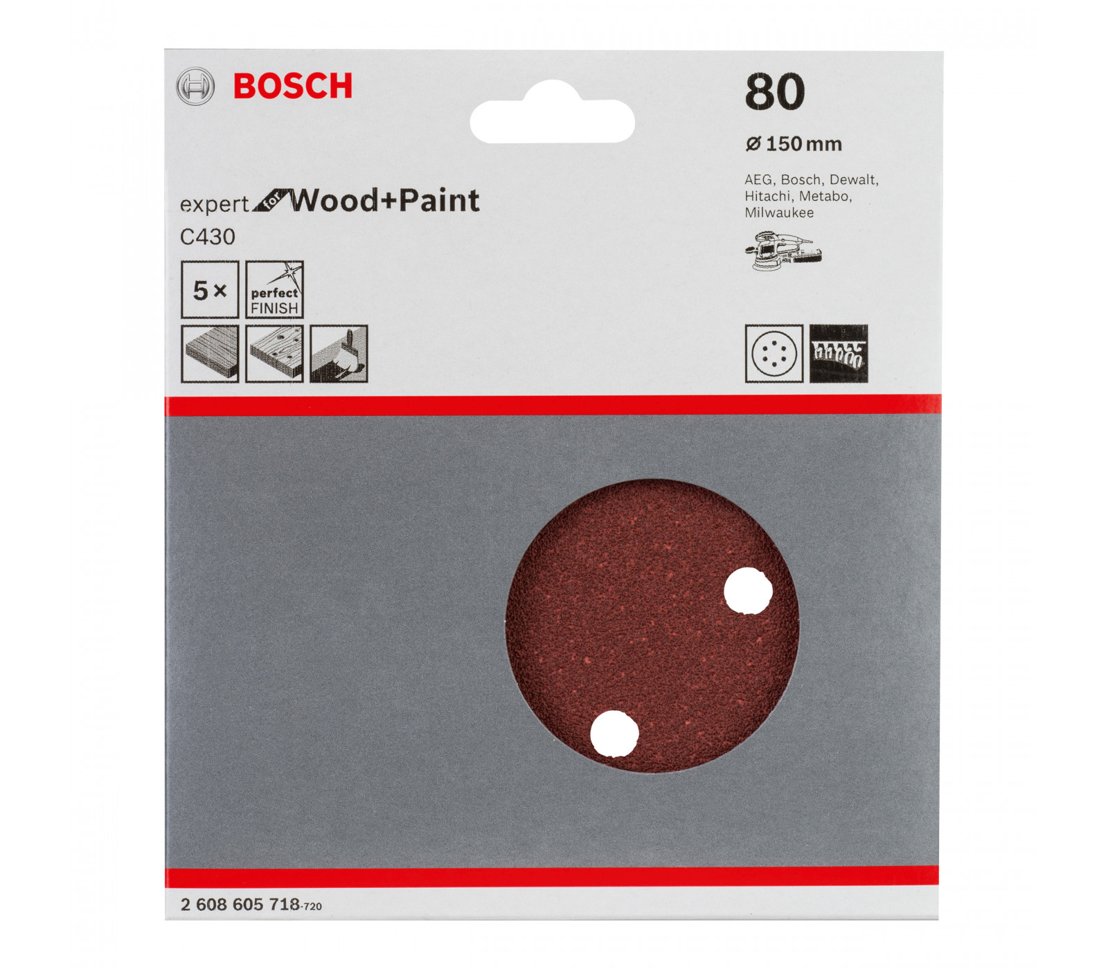 Bosch šlifavimo popierius C430, 150 mm, 80 grūdėtumas, 5 vnt.