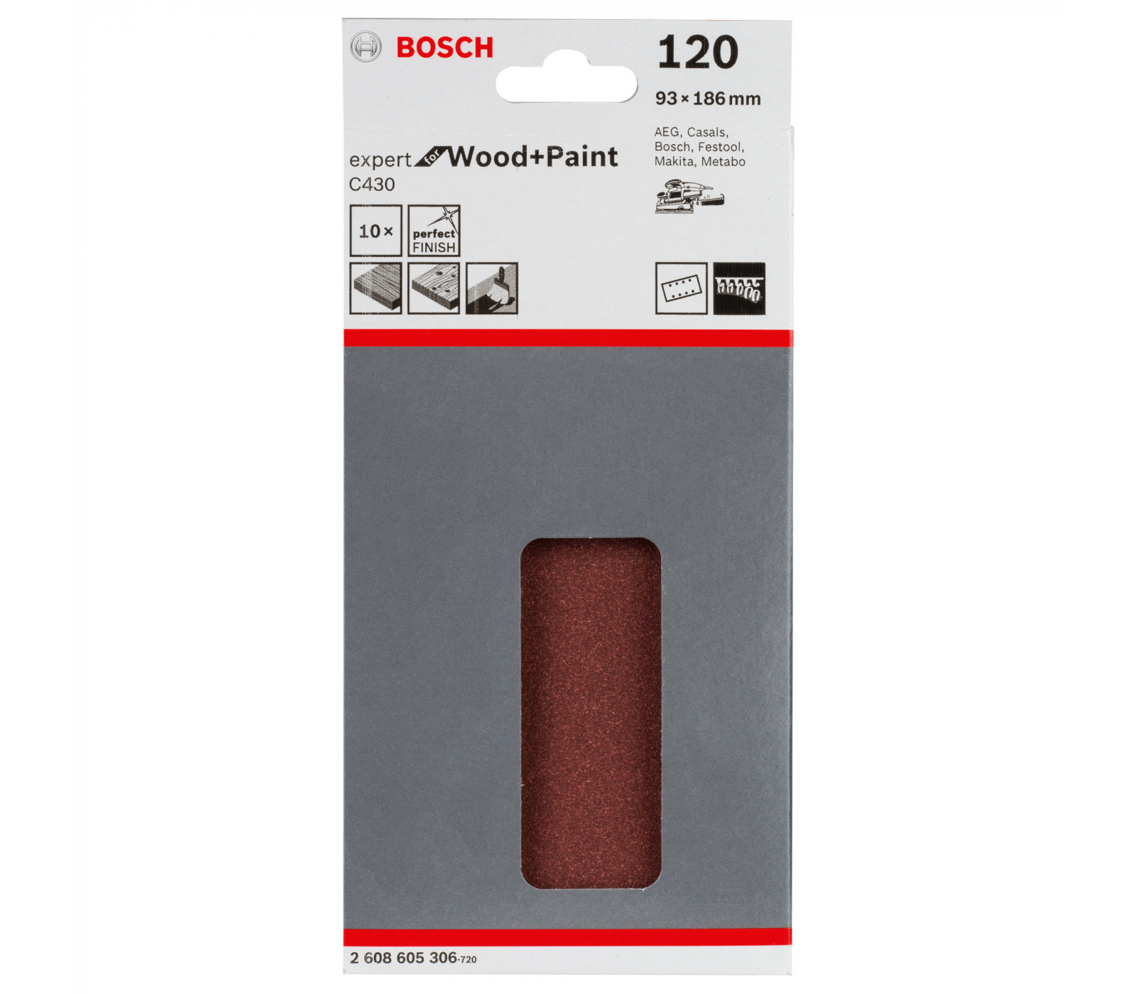 Bosch šlifavimo popierius C430, 93 x 186 mm, 120 grūdėtumas, 10 vnt.