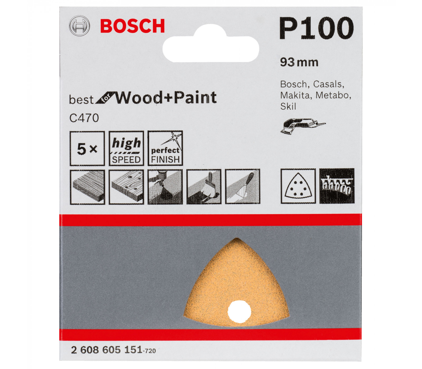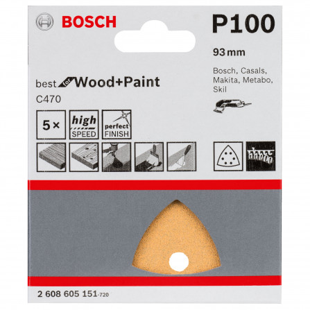 De Bosch driehoek schuurpapier C470 heeft een korrel van 100 en wordt geleverd in een set van 5 stuks. Het is ontworpen voor efficiënte en fijne afwerking op verschillende oppervlakken, wat het een veelzijdige keuze maakt voor zowel professionals als hobbyisten.