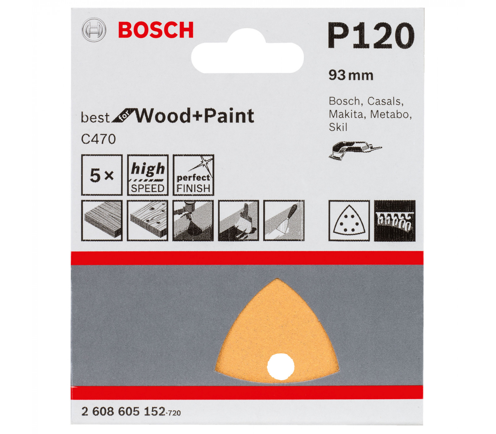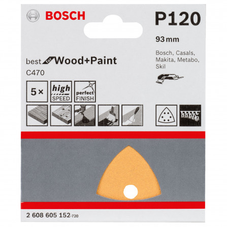 De Bosch driehoekschuurpapier C470, met een afmeting van 93 mm en een korrel van 120, biedt een uitstekende schuurervaring. Gebruikers waarderen de duurzaamheid en effectiviteit van het schuurpapier bij het schuren van verschillende oppervlakken.