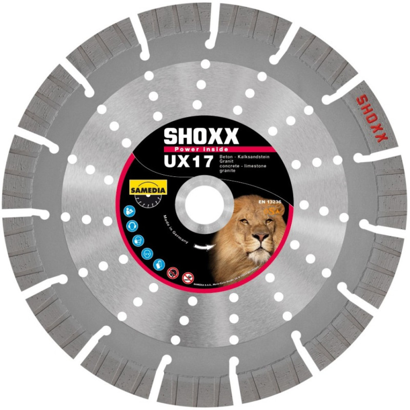 Deim. dis. „SAMEDIA" UX17 300x20 mm yra deimantinis diskas, pasižymintis pažangia SHOXX technologija. Vartotojai vertina šį įrankį už greitesnį pjovimą, mažesnį vibraciją ir ilgesnį tarnavimo laiką. Jis taip pat laikomas saugesniu ir patikimesniu pasirinkimu, pagamintu Vokietijoje.