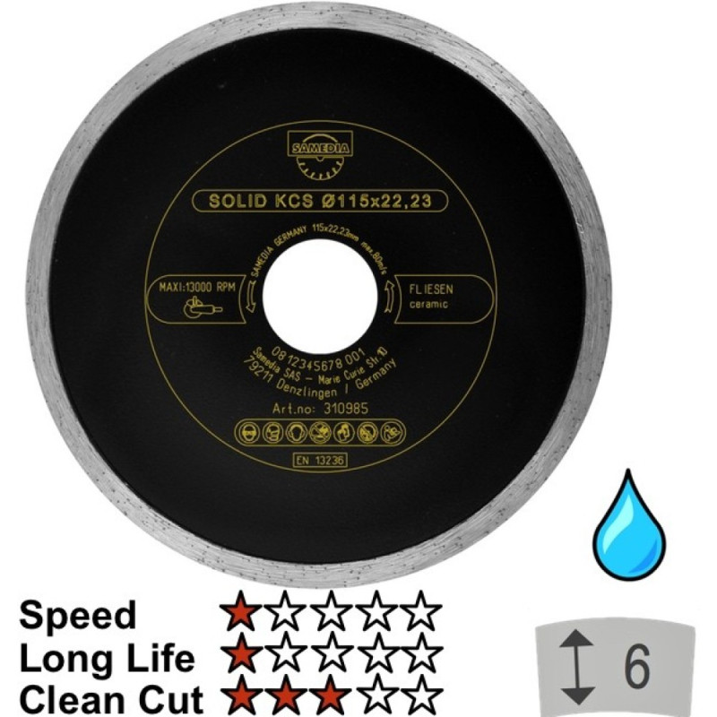 Deim. dis. „SAMEDIA" KCS 125 x 22 x 2 mm yra puikus pasirinkimas keraminėms plytelėms pjauti, pasižymintis ištisiniu segmentu, kuris užtikrina efektyvų ir tikslų pjovimą. Jo 22,23 mm tvirtinimo skylė leidžia lengvai pritvirtinti diską, o 2 mm storis suteikia patikimumą ilgesniam naudojimui.