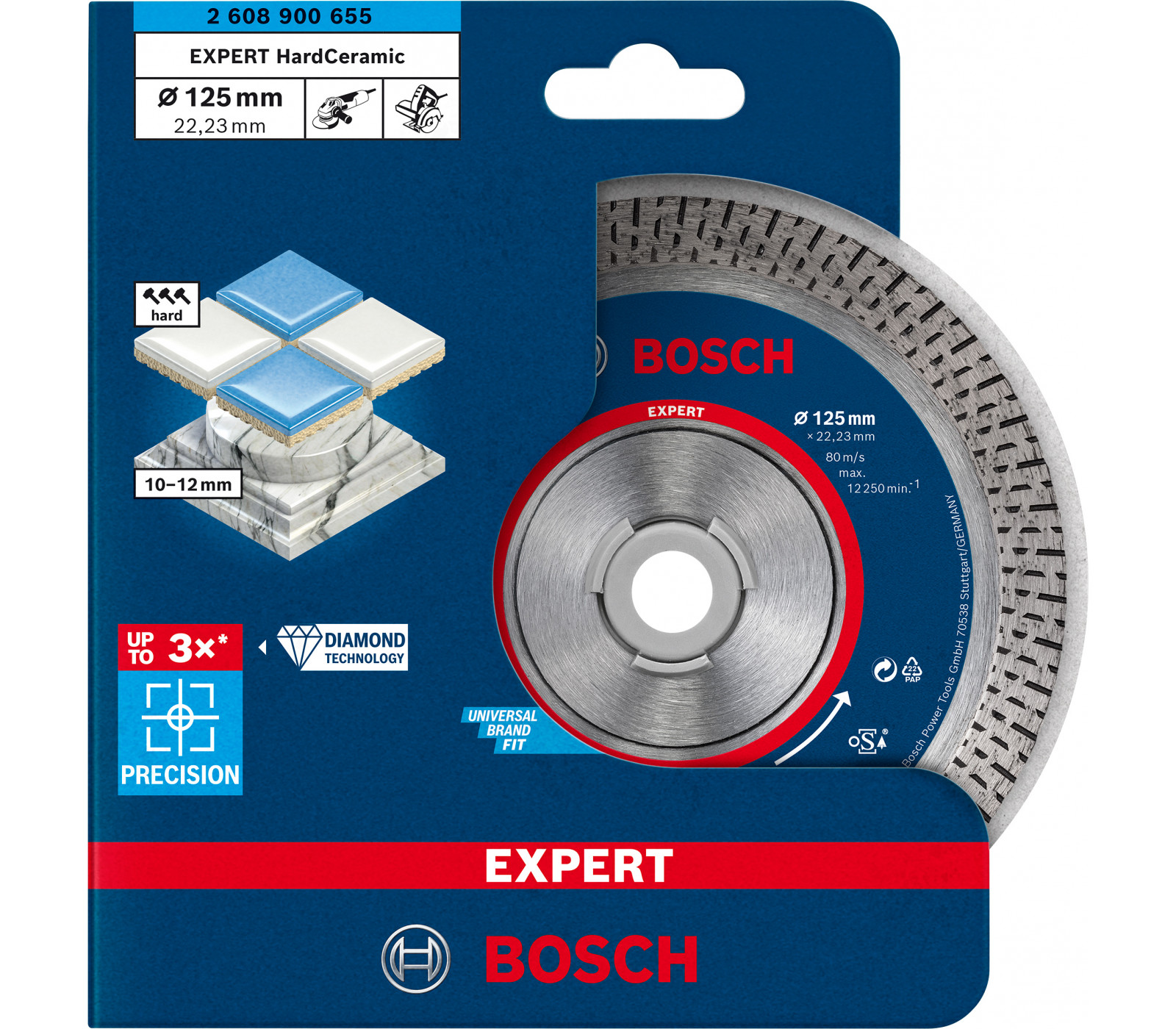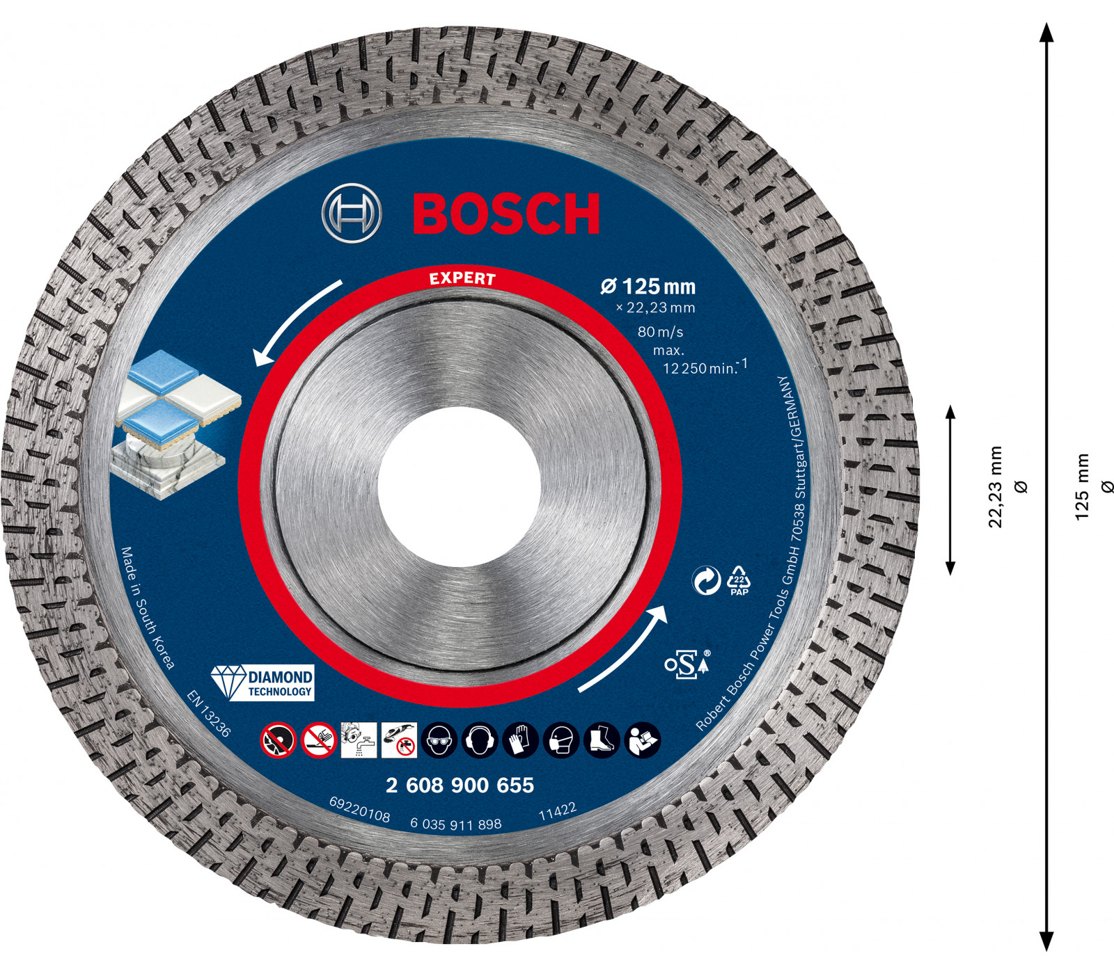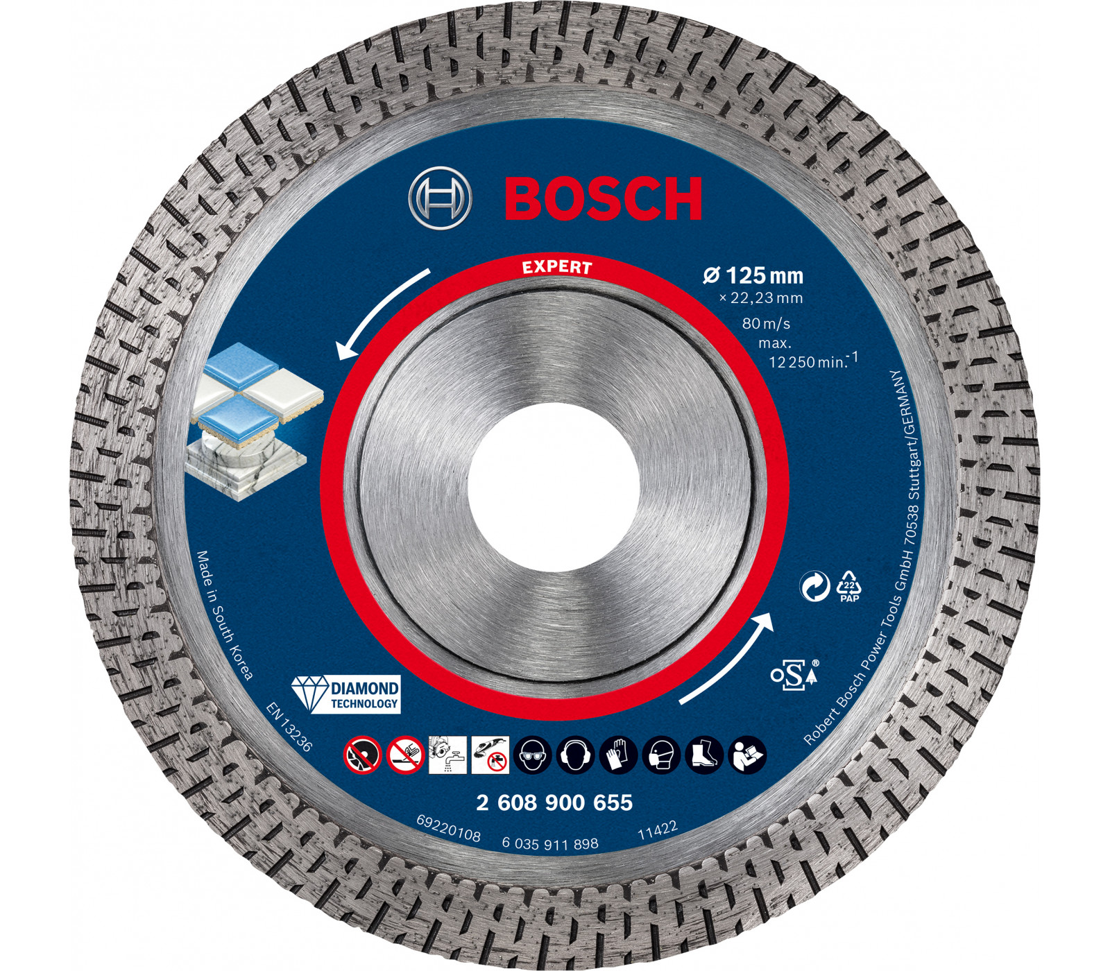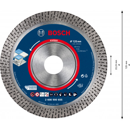 Deimantinis pjovimo diskas kietai keramikai Bosch Expert, 125 x 22,23 x 1,4 mm, 1 vnt.