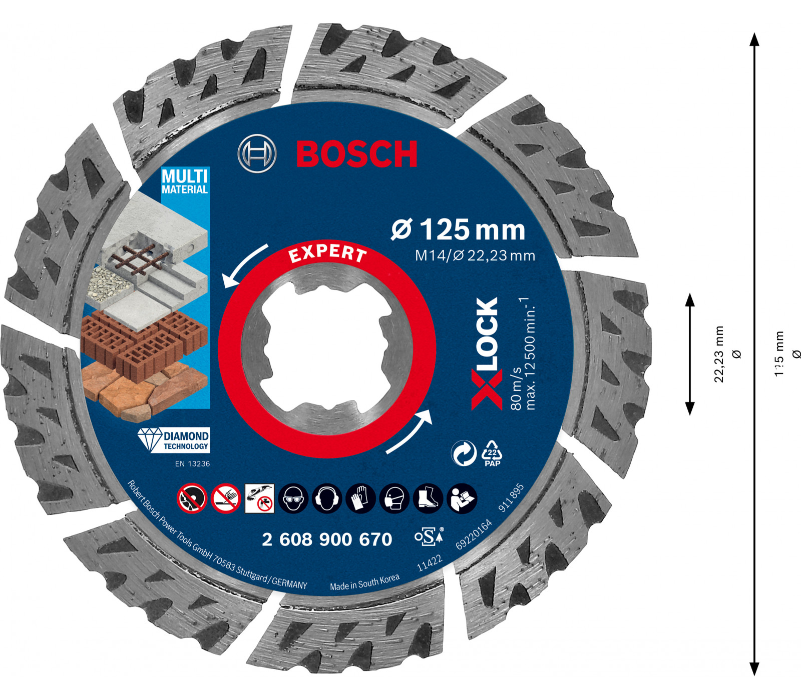 Universalus deimantinis pjovimo diskas statyboms Bosch Expert, 125 x 22,23 x 2,4 mm, 1 vnt.