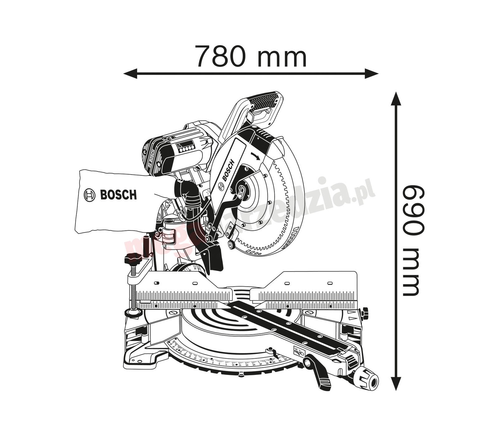 - 305 mm zaagblad biedt de mogelijkheid voor brede sneden.