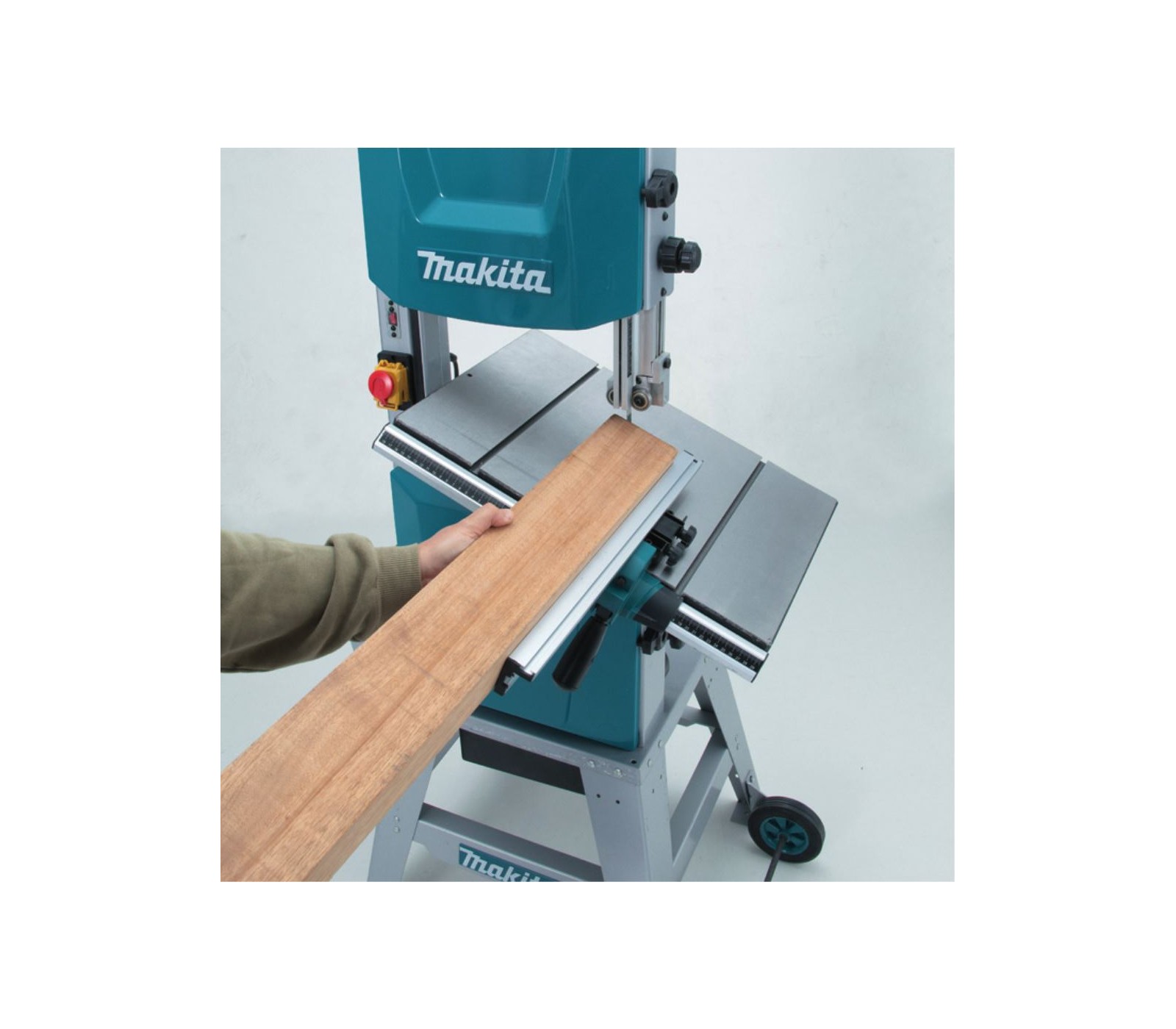 Makita LB1200F juostinis pjūklas su 900 W varikliu ir 305 mm pjovimo aukščiu yra galingas ir tikslus įrankis, skirtas įvairiems medienos pjovimo darbams.