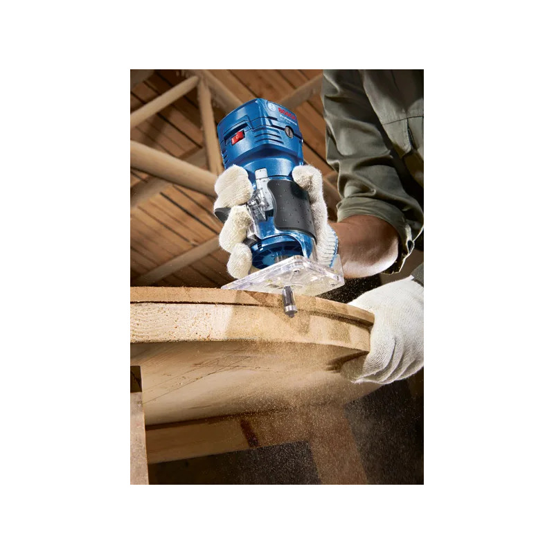 Kompaktiška ir galinga – Bosch GLF 55-6 Professional turi 550 W variklį, pasiekiantį 33 000 aps./min. greitį. Ideali briaunų frezavimui laminato ar faneros apdirbimui. Lengva valdyti viena ranka, sveria tik 1,4 kg, o permatomas pagrindas pagerina matomumą.