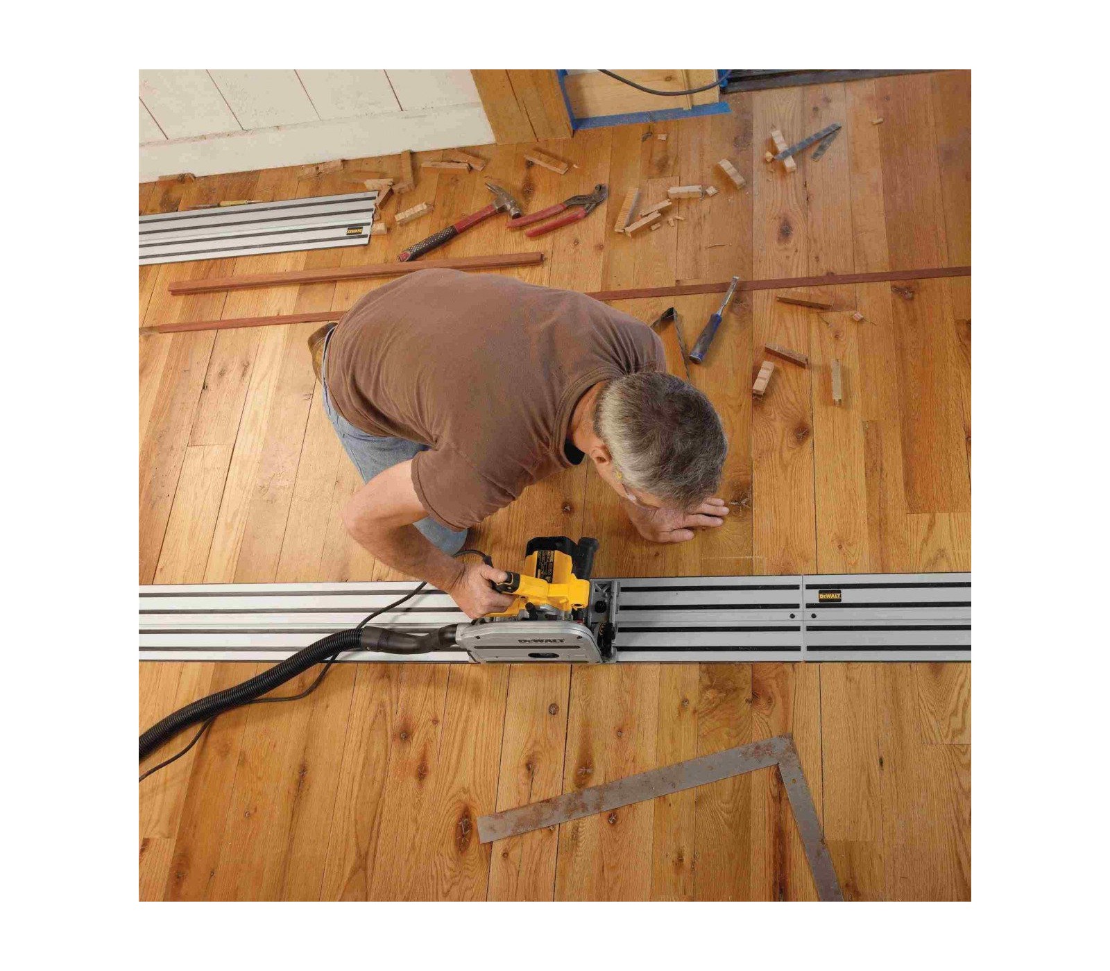 Dewalt elektrinis įleidžiamas pjūklas (DWS520KTR-QS), 165 mm, 1300 W + kreipiančioji liniuotė (DWS5022), 1,5 m