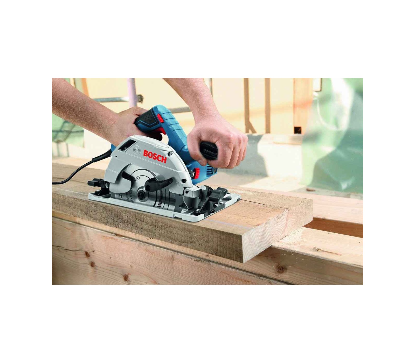 Bosch GKS 55+ GCE – galingas elektrinis rankinis diskinis pjūklas su 1350 W varikliu ir 165 mm pjovimo disku, užtikrinantis tikslų ir švarų pjovimą įvairiomis medžiagomis.