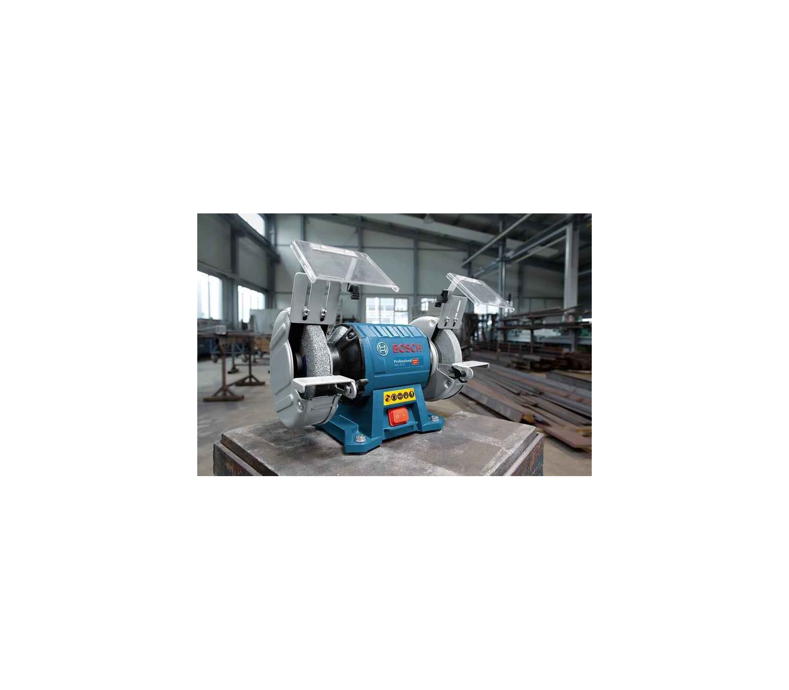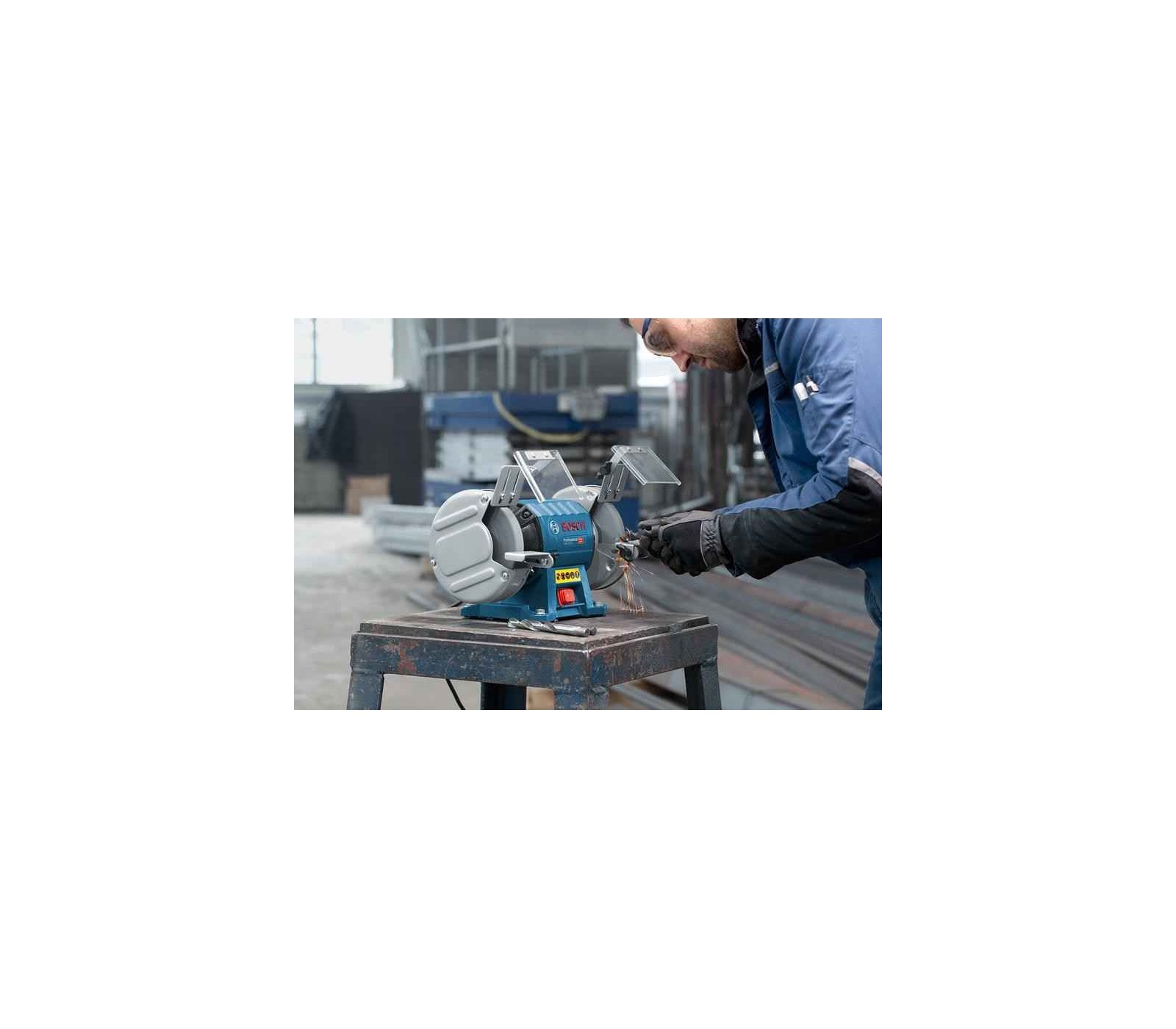 De Bosch GBG 35-15 is een robuuste bankslijpmachine met een onderhoudsvrije 350 W inductiemotor, ideaal voor slijpen, gladmaken en scherpen. De gegoten aluminium behuizing met afgedichte lagers beschermt tegen stof. Met 150 mm schijven (korrel 24 en 60) en een stevige basis biedt het een veilige en stabiele werking.