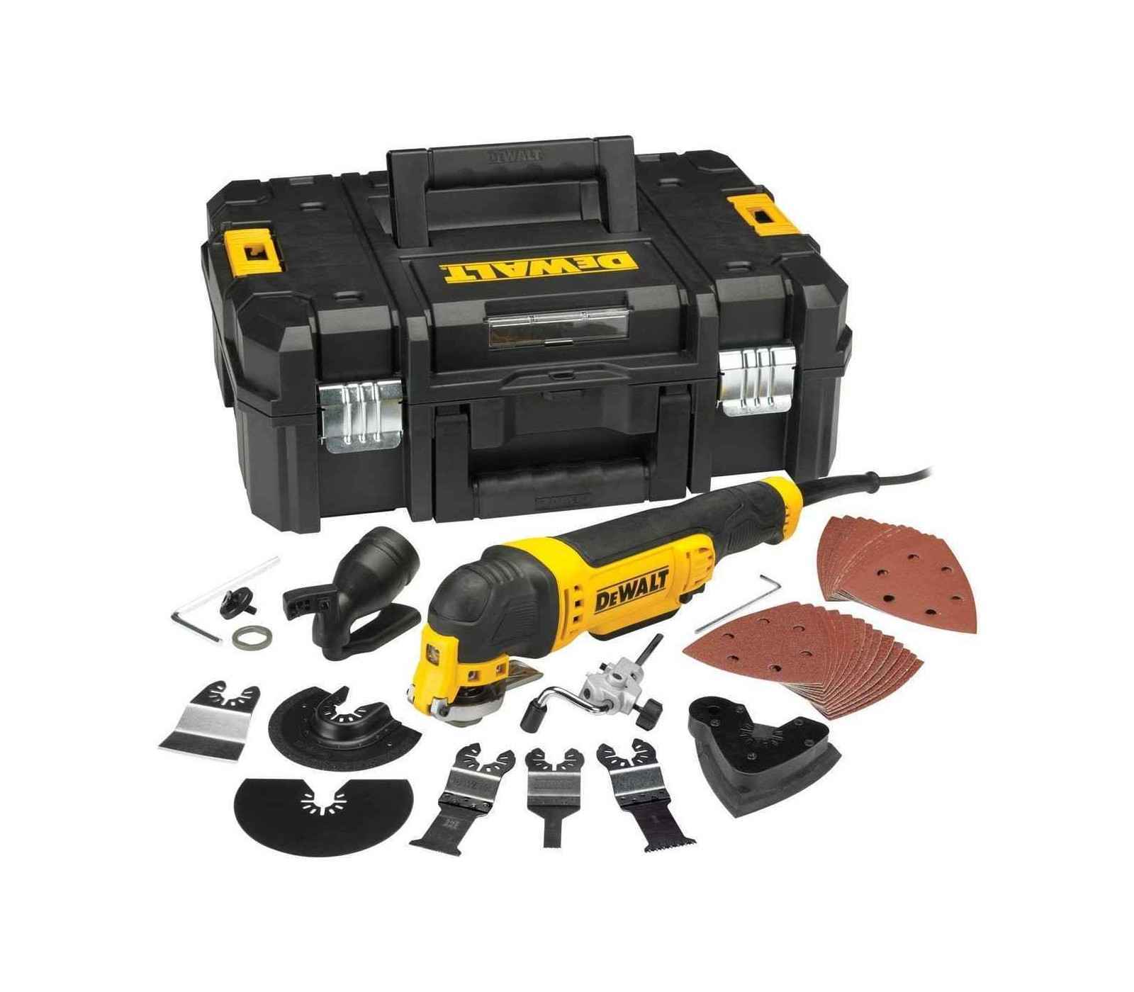 DeWalt DWE315KT – dit is een multifunctioneel elektrisch gereedschap met een krachtige motor van 300 W, die tot 22.000 OPM behaalt. De set omvat 37 accessoires en een snelwisselsysteem, waardoor het mogelijk is om accessoires snel en zonder gereedschap te verwisselen. Ideaal voor verschillende zaag- en schuurwerkzaamheden. Het gereedschap werkt op netstroom en 220 V zorgt voor betrouwbare werking bij verschillende klussen. De set wordt ook geleverd met een duurzame koffer voor gemakkelijk opbergen.