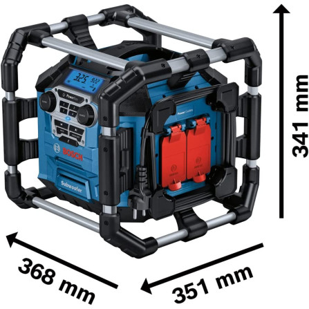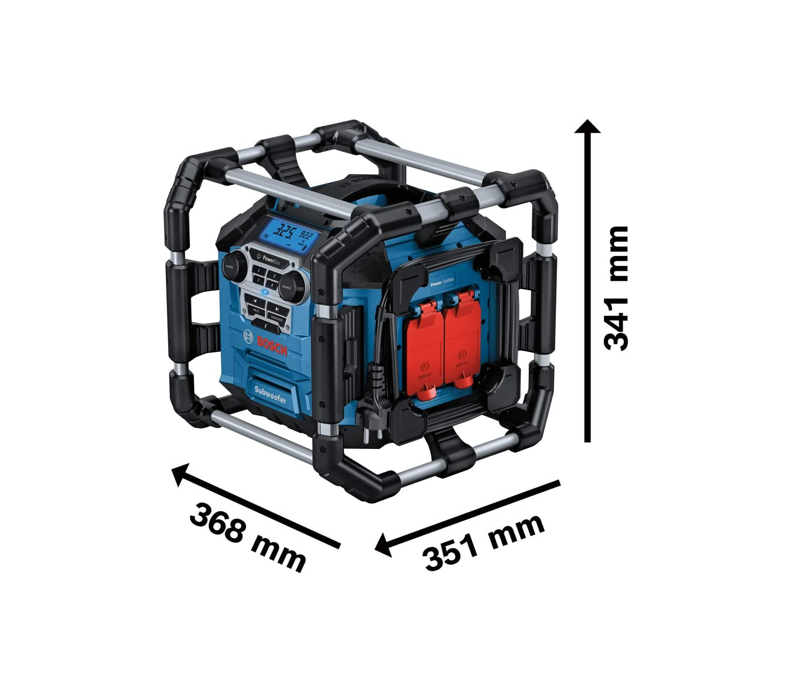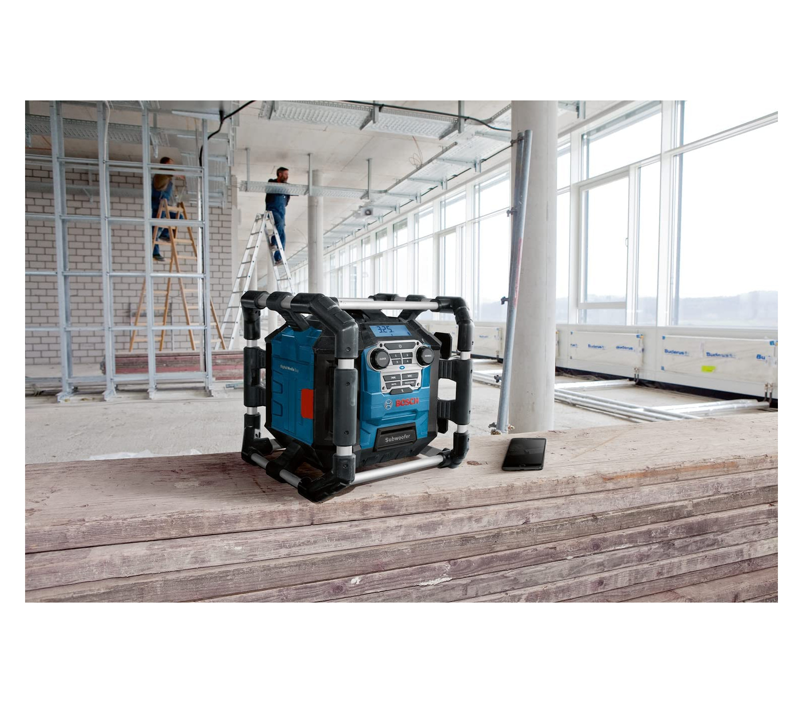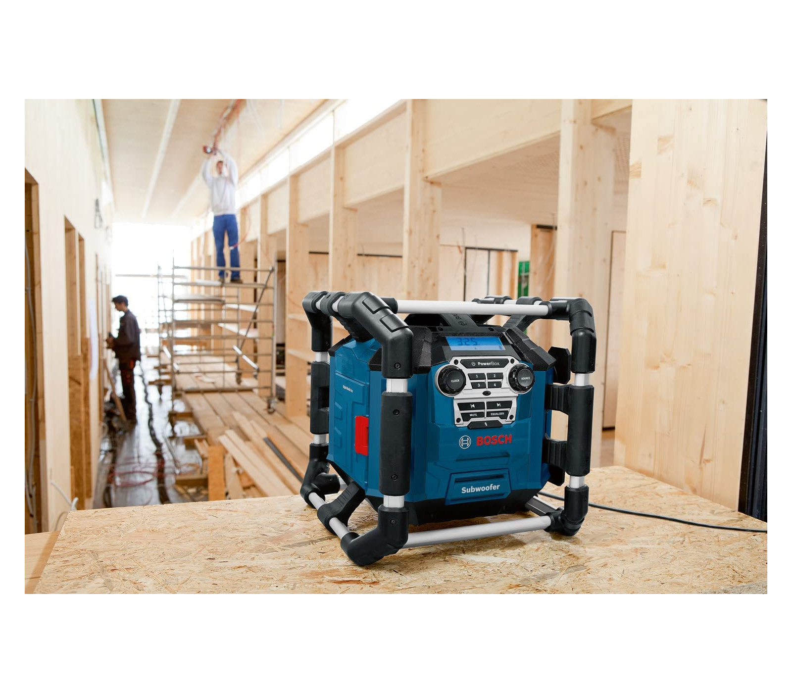 Ideaal voor bouwplaatsen, werkplaatsen en omgevingen waar muziek en batterijoplading nodig zijn.