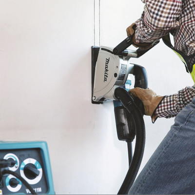 De Makita SG1251J sleuvenfrees (125 mm) is compact, krachtig (1400 W) en zorgt voor nette sneden in metselwerk. Mogelijk om twee diamantbladen tegelijk te gebruiken voor sneller en netter werk. Zaagdiepte tot 30 mm, breedte tot 30 mm. Met stofafzuigaansluiting en ergonomische handgreep. Het SJS-koppelingssysteem beschermt motor en tandwielen. Perfect voor elektriciens en installateurs – bijv. het frezen van sleuven in beton of baksteen voor kabels en leidingen.