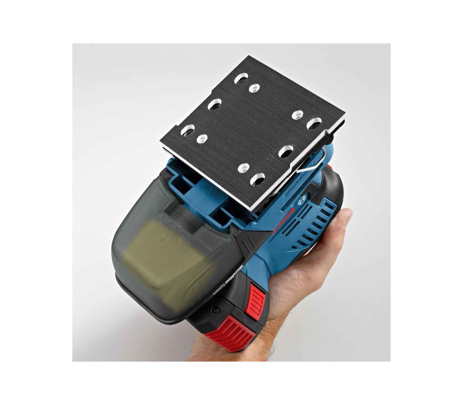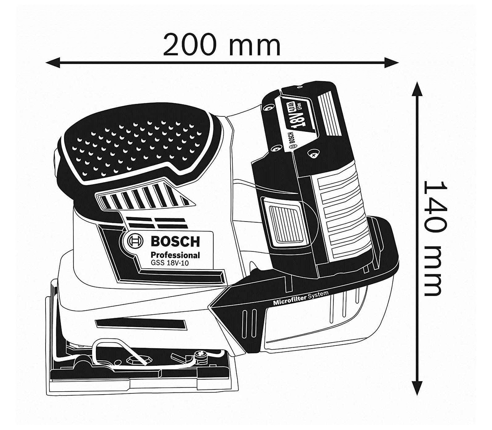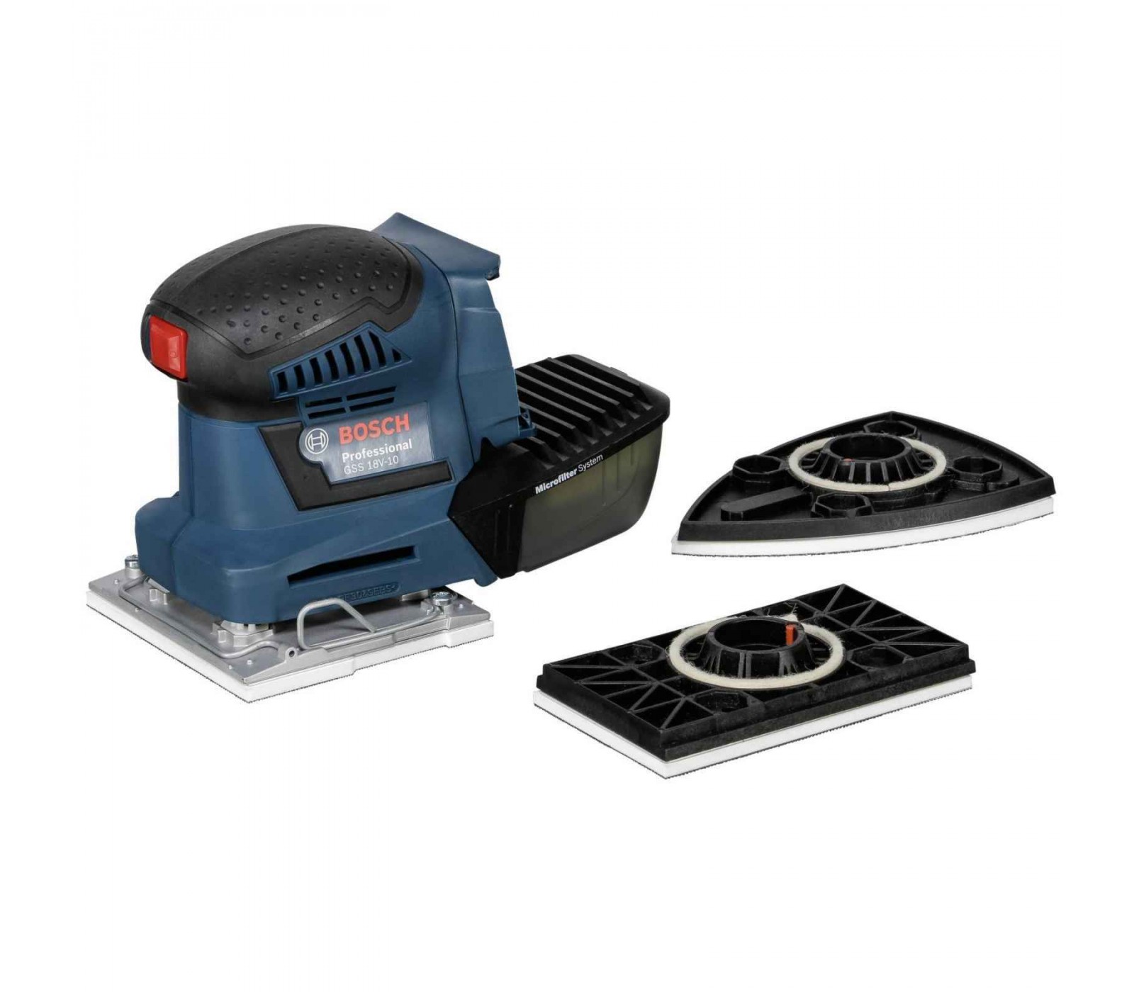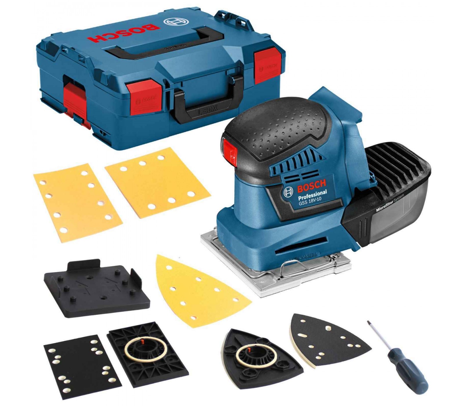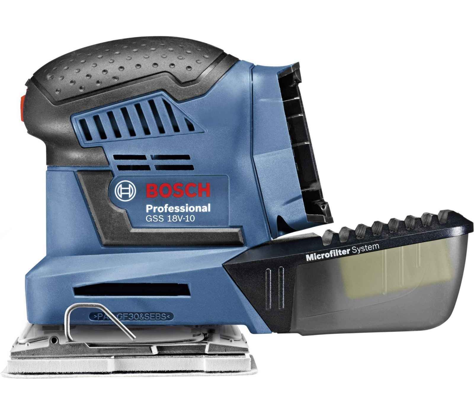 Akumuliatorinis plokštuminis šlifuoklis Bosch GSS 18V-10, 18 V, lagaminas + priedai