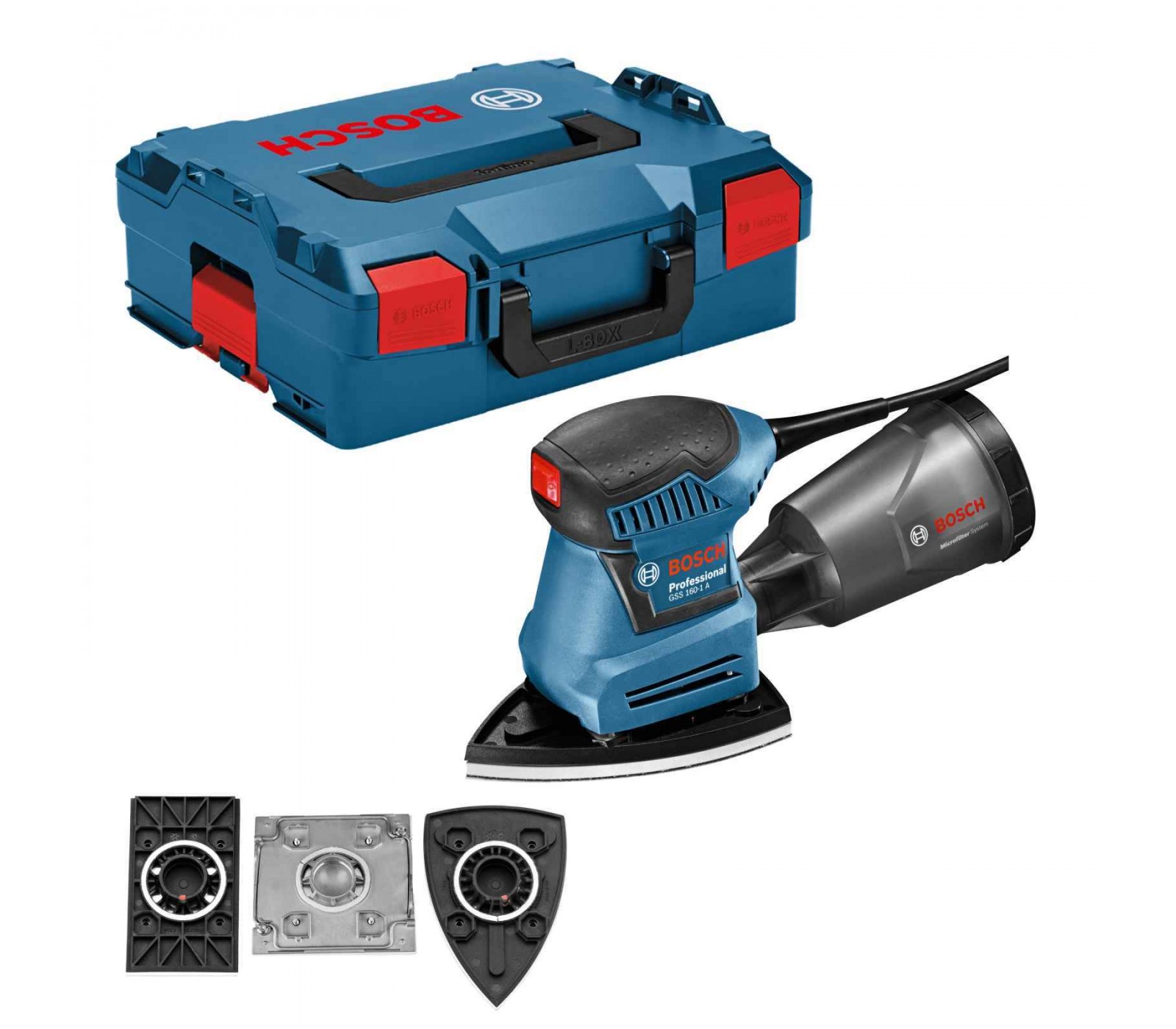 Plokštuminis šlifuoklis Bosch GSS 160-1 A, 180 W, lagaminas + priedai