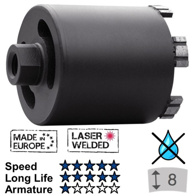 De Deim. rozečių karūna „SAMEDIA" DAM 68” heeft verschillende voordelen, zoals een langere levensduur door TURBO segmenten die hoge temperaturen aankunnen en een sterke hechting door de laserverstevigde segmenten. Het product is ideaal voor droog boren en kan gebruikt worden met stofafzuiging.