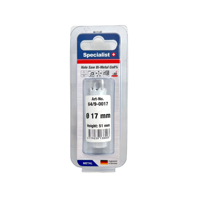 De Karūna SPECIALIST+ Bi-Metal 17 mm is een duurzame en krachtige boorkroon, gemaakt van Bi-Metal HSS-Co(8%), perfect voor het boren in diverse materialen zoals zwart metaal, kunststof en hout. Met een diepte van 51 mm biedt deze kroon veelzijdigheid voor verschillende borklussen, ontworpen en verbeterd in Duitsland.