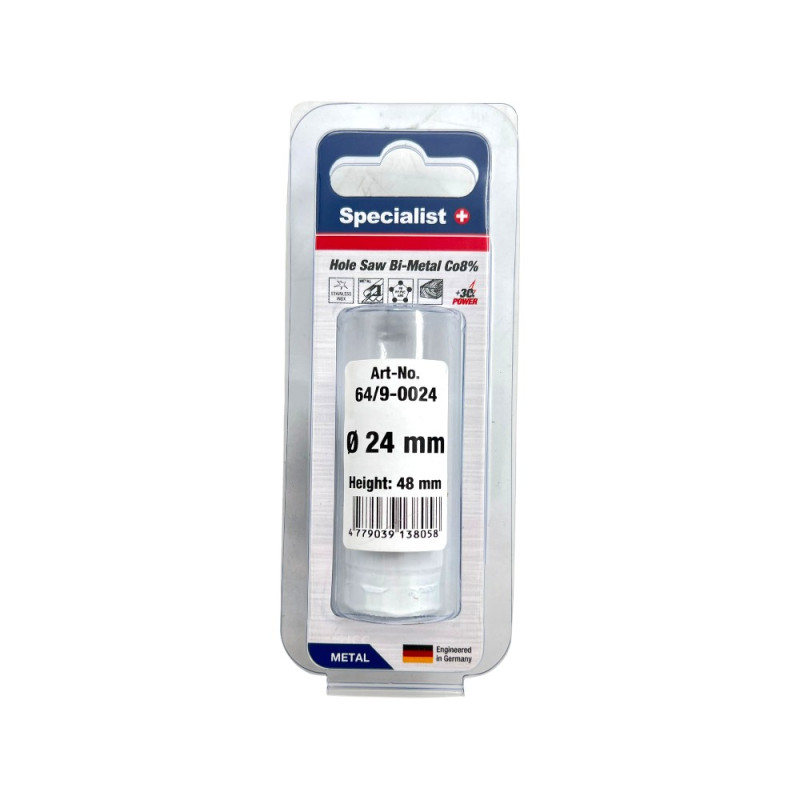 Bi-Metal gręžimo karūnos, pjovimo gylis yra 40 mm, ideliai tinka metalui, plastikui, gipso kartono medžiagoms ir izoliacinėms plokštėms (pvz., gipso kartono plokštėms ir OSB plokštėms). • Puikiai tinka gręžti: juodą metalą, spalvotus metalus, nerūdijantį plieną, minkštą medieną, medieną su vinimis, laminatą, plastiką (PVC, PE, PP, PS, PA), stiklo pluoštu sustiprinta plastikinę plokštę, akrilinį stiklą, izoliacinę plokštę, putplasčio plokštę, gipso kartono plokštę.• Galima gręžti: statybinį plieną, ketų, OSB plokštę, kietmedį, MDF plokštę, terasos medieną, multiplex plokštę, HDF plokštę, parketą.• Suprojektuota ir patobulinta Vokietijoje.