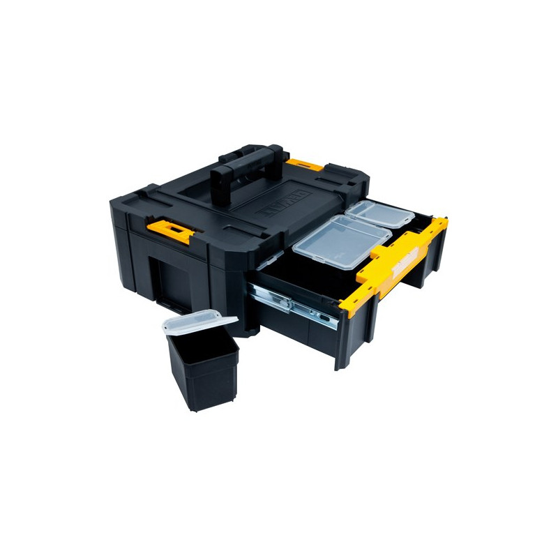 De Dewalt TSTAK III DWST1-70705 is een stevige en praktische gereedschapskoffer die ideaal is voor zowel professionals als doe-het-zelvers. Gebruikers prijzen de robuuste constructie en het ruime interieur dat voldoende ruimte biedt voor aluw gereedschap.