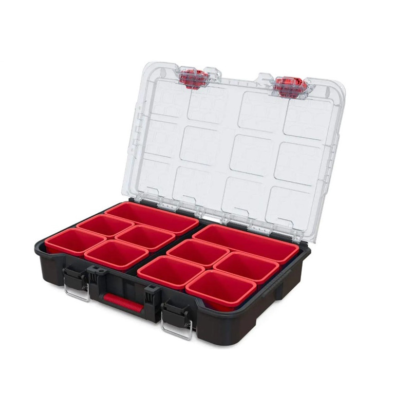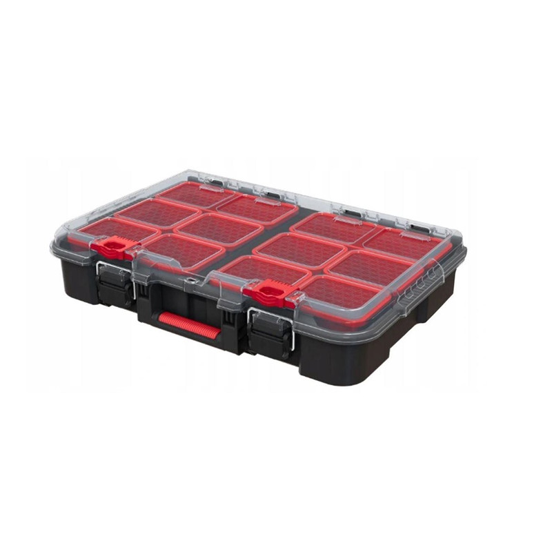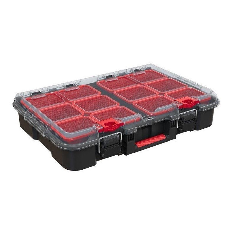 Prekės ženklas- Keter. Modelis- STACK N ROLL. Artikulas- 251491. Ilgis- 51.5 cm. Plotis- 34.5 cm. Aukštis- 11.5 cm. Svoris- 2 kg. Medžiaga- Plastikas. Spalva- Juoda, Raudona. Su ratukais- Ne. Skilčių skaičius- 10. Su rankena- Taip. Atsparumas vandeniui- Ne. Su užraktu- Ne.