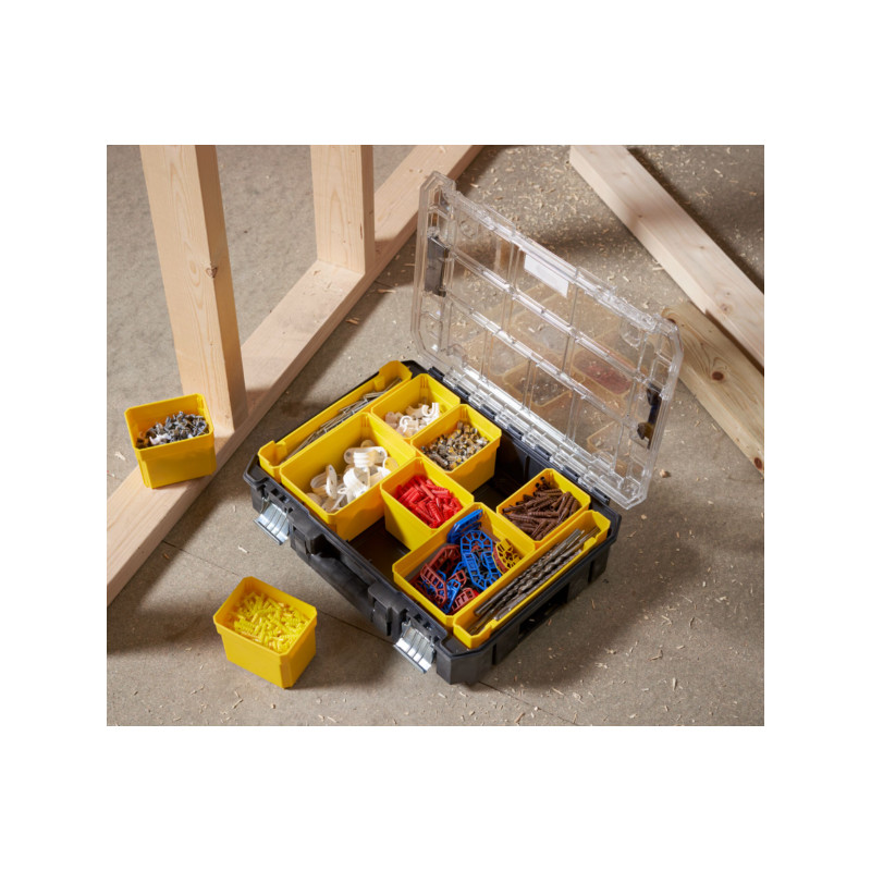 De FATMAX PRO-STACK™ Stanley gereedschapskist is een robuuste en veelzijdige opslagoplossing voor gereedschap. Gebruikers prijzen de degelijkheid en praktische indeling, die zorgt voor efficiënte organisatie. De kist is ontworpen met gebruiksgemak in gedachten, wat bijdraagt aan de tevredenheid van de klanten.