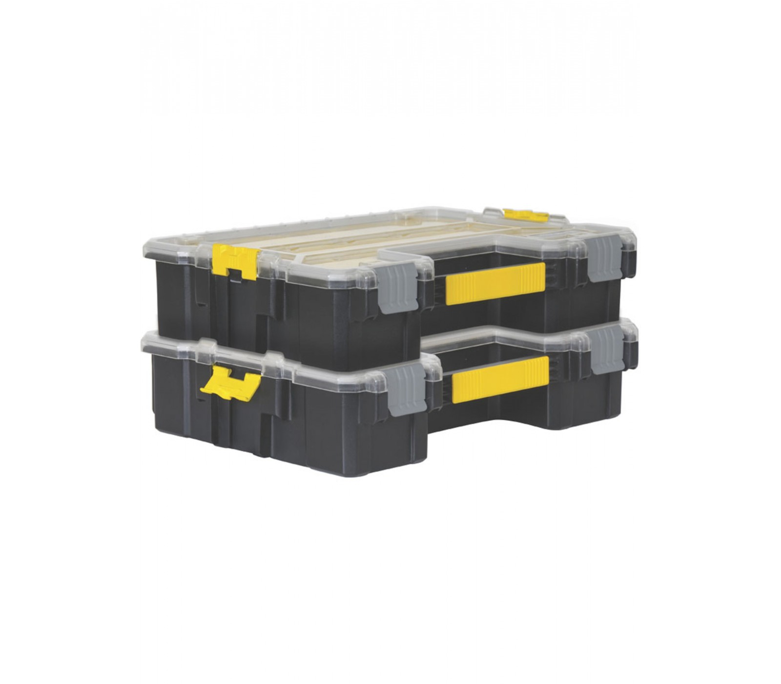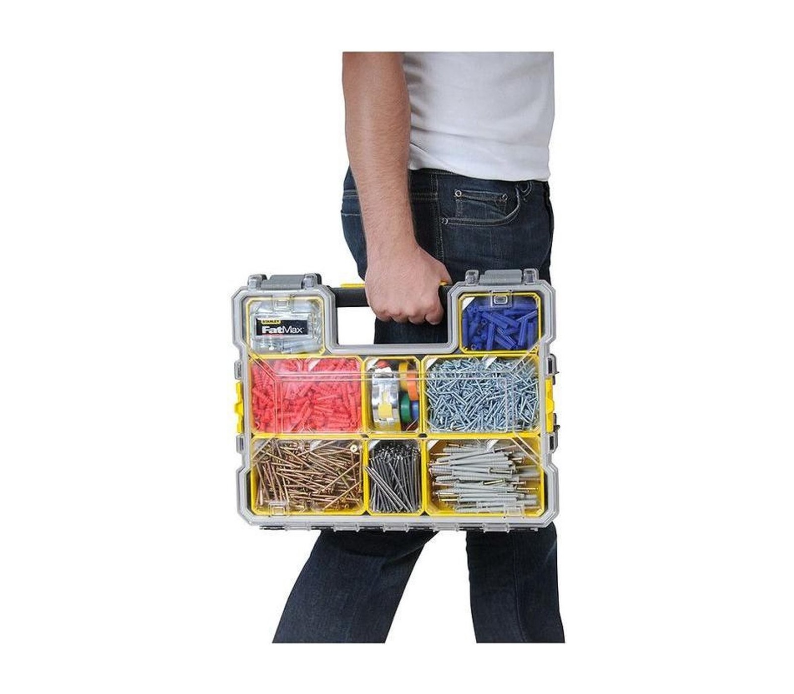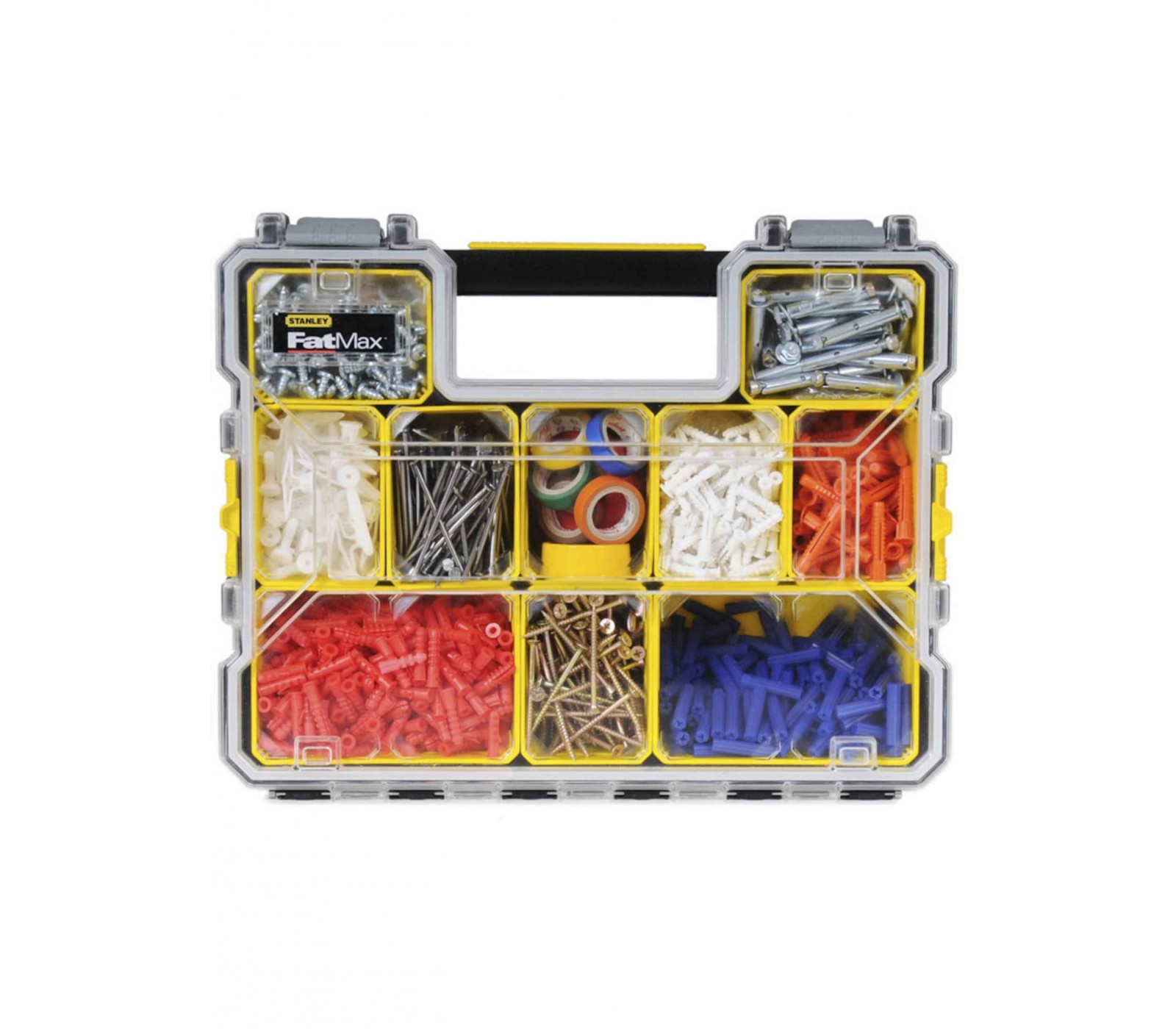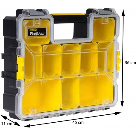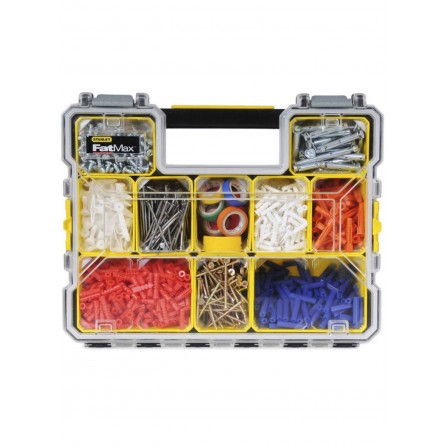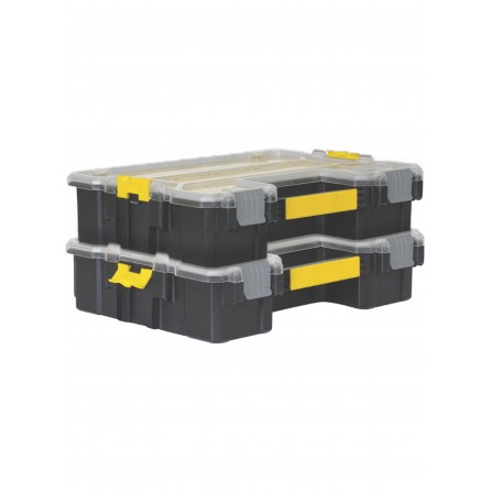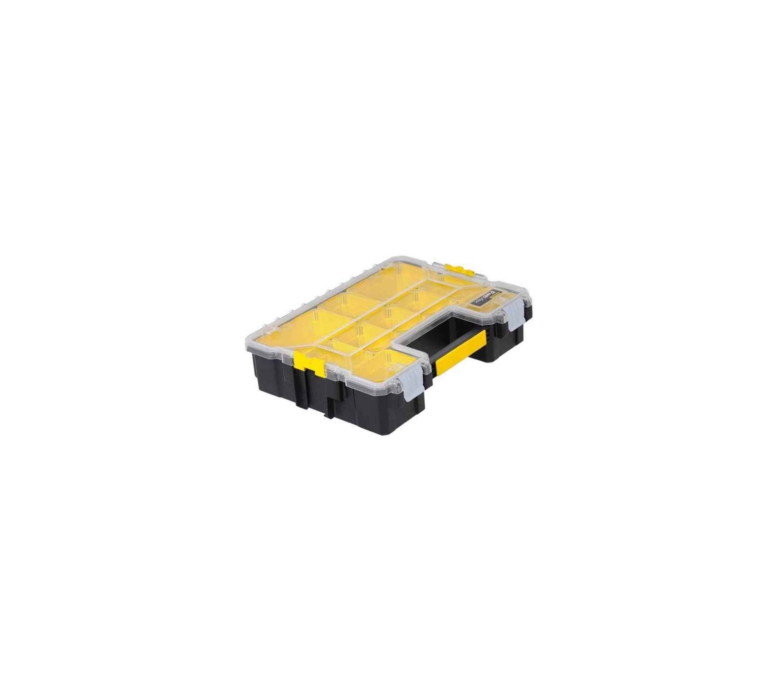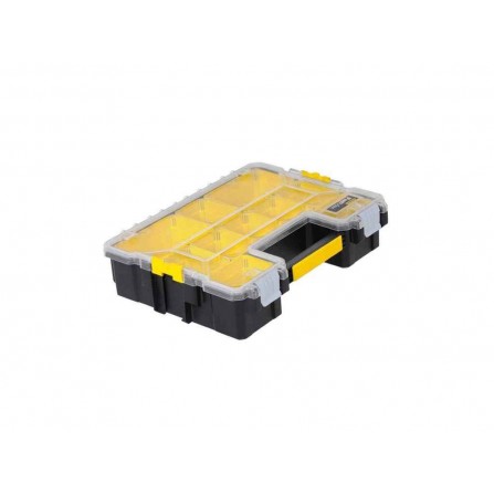 De Smulkių daiktų dėžė van STANLEY is een praktische oplossing voor het organiseren van kleine onderdelen, componenten en accessoires. Met de 10 afneembare dozen die stapelbaar zijn, is deze opbergdoos ideaal voor een overzichtelijke opslag. De bijna onbreekbare deksel biedt een goede zichtbaarheid van de inhoud, terwijl het ontwerp ervoor zorgt dat de afneembare compartimenten veilig zijn afgesloten wanneer ze gesloten zijn.