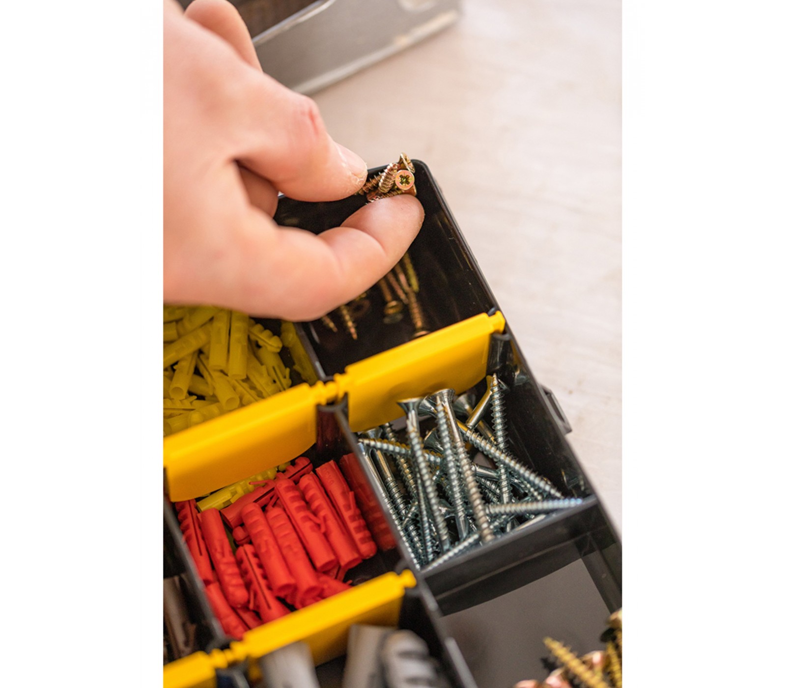 Met 22 compartimenten is er voldoende ruimte om verschillende gereedschappen georganiseerd te houden.