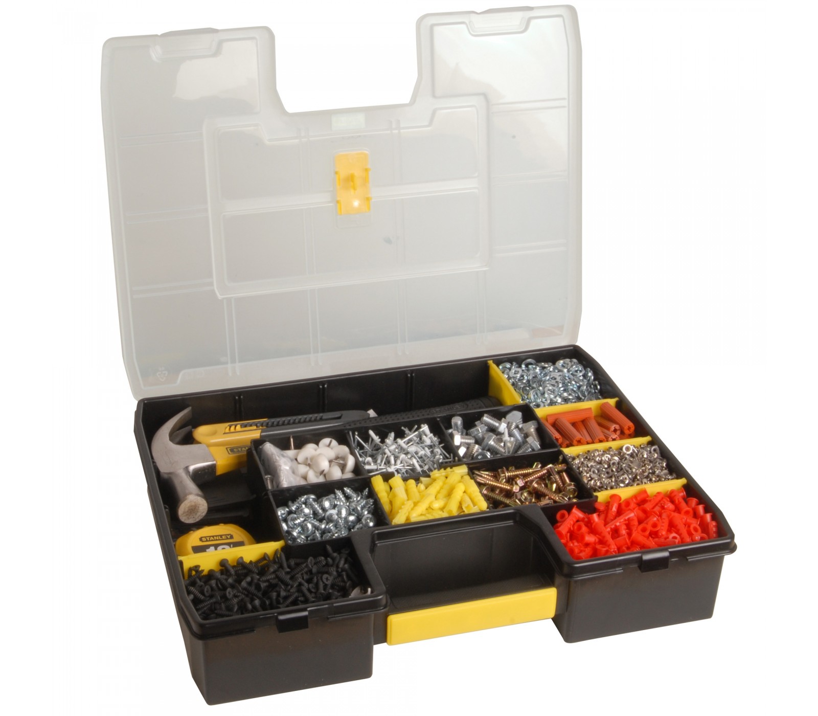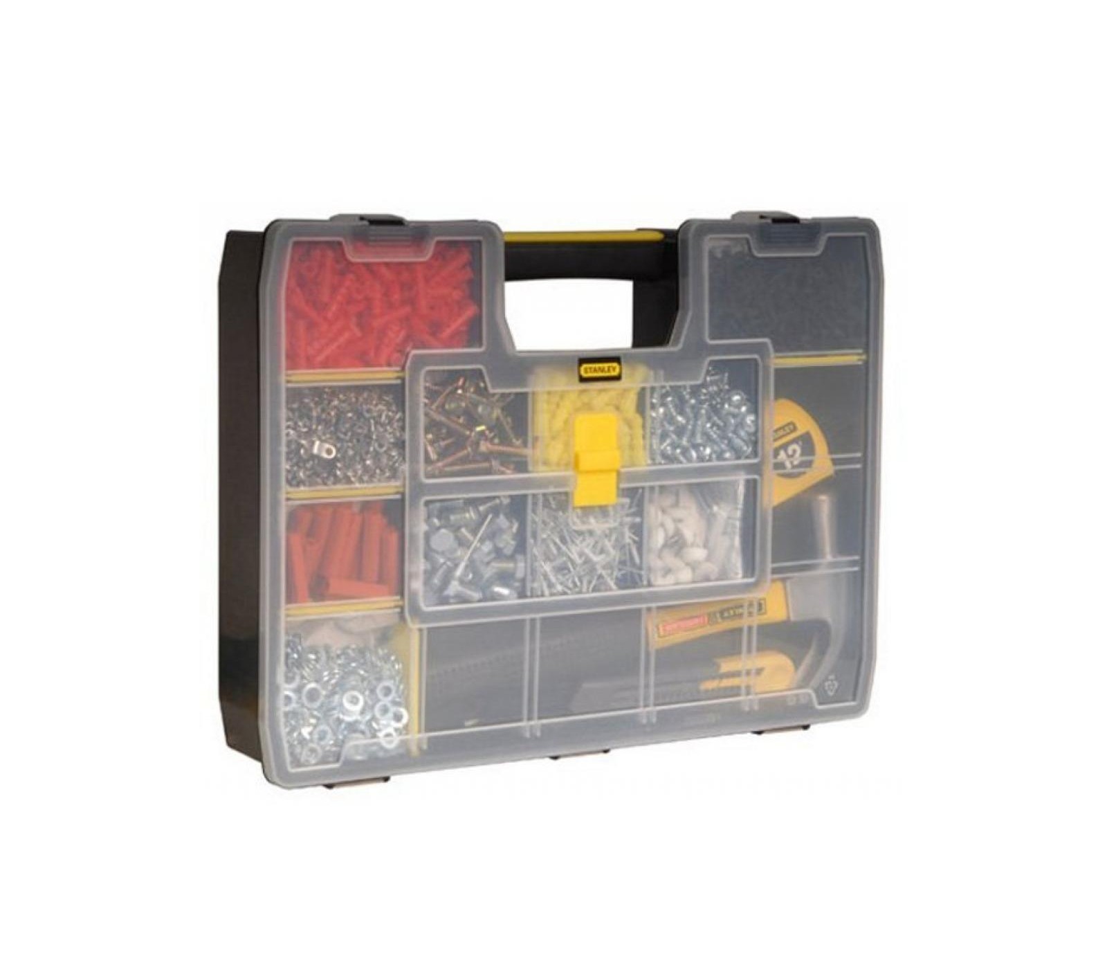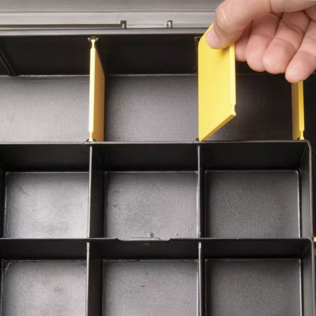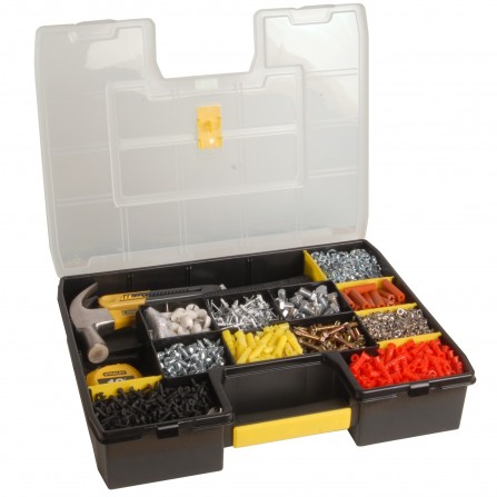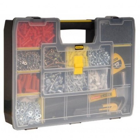 De Stanley Organizer SortMaster (1-94-745) is een handige gereedschapskoffer met 17 compartimenten, ideaal voor het organiseren van verschillende kleine gereedschappen en accessoires. Gebruikers waarderen de stevige constructie en de veelzijdigheid van het ontwerp, waardoor het een uitstekende keuze is voor zowel hobbyisten als professionals.