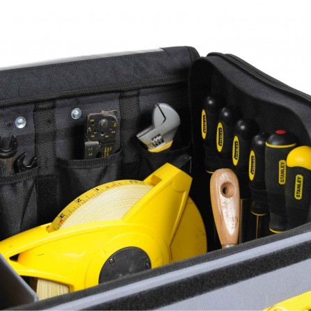 Prekės ženklas- Stanley. Artikulas- 1-93-950 . Ilgis- 46 cm. Plotis- 28 cm. Aukštis- 23 cm. Medžiaga- Audinys, Natūrali oda, Plastikas. Spalva- Juoda, Geltona. Garantija- 24 mėn. Papildoma informacija- Patvarumas: iki 25 kg.