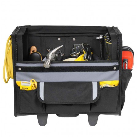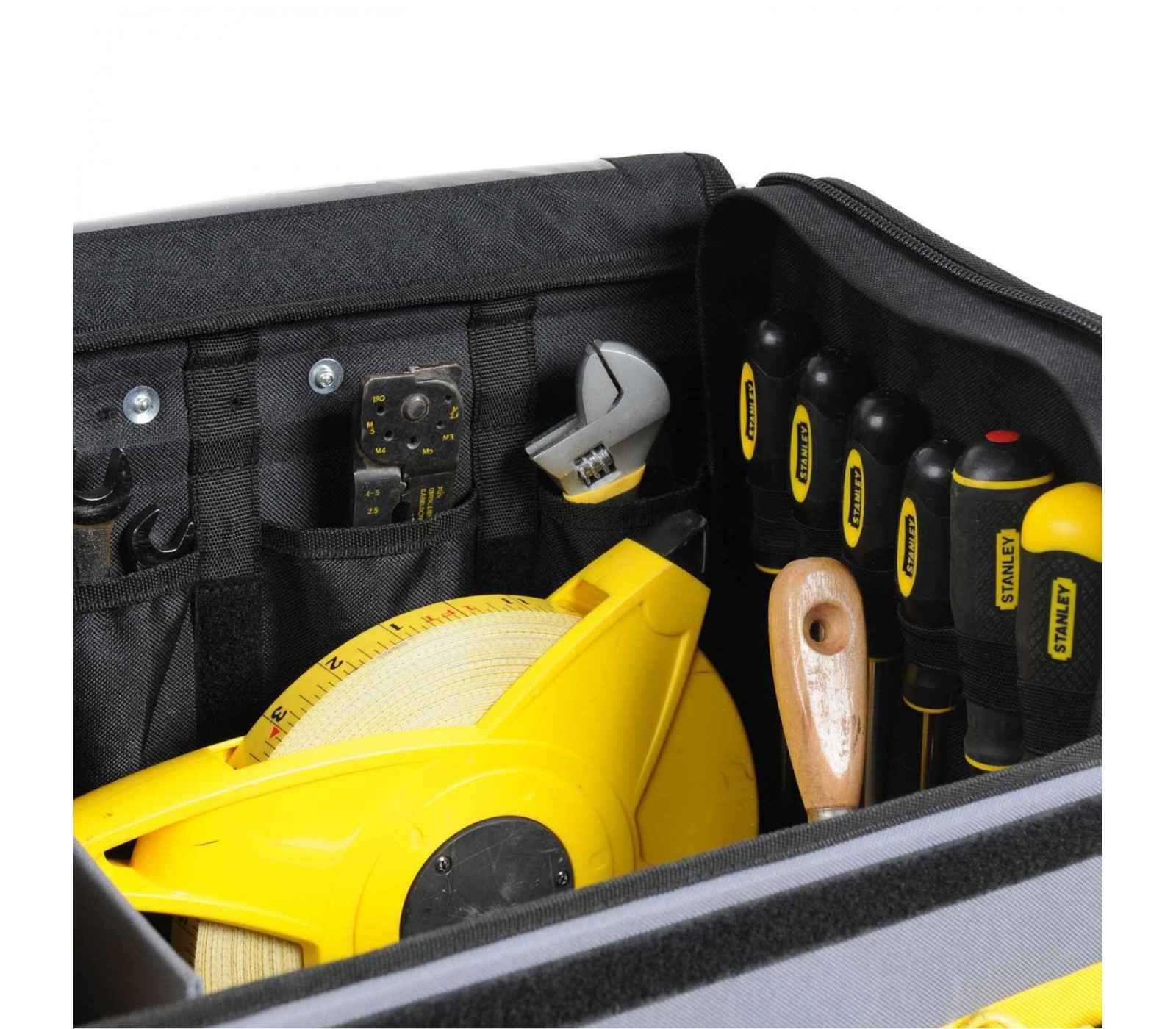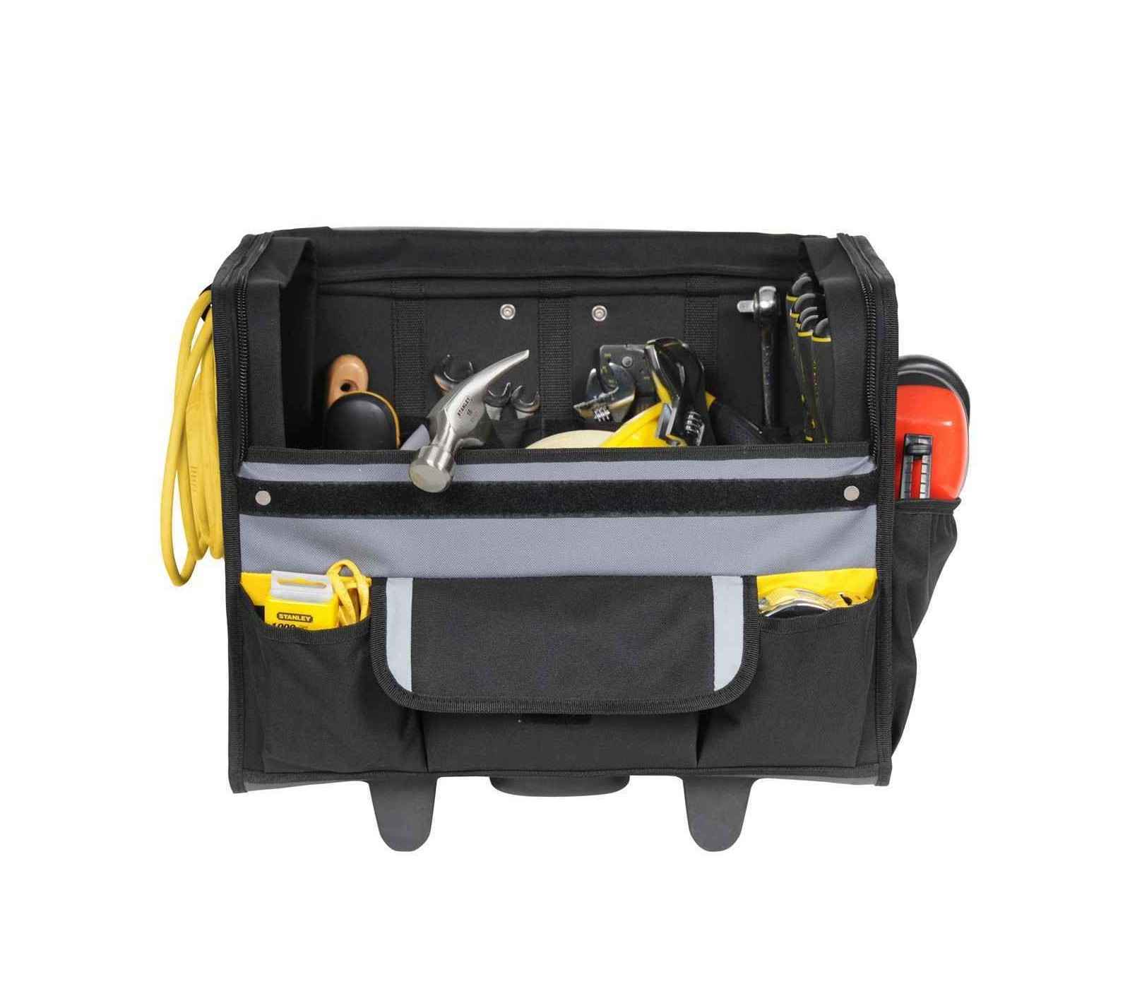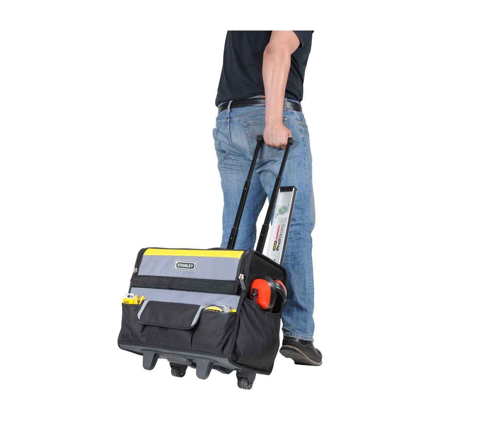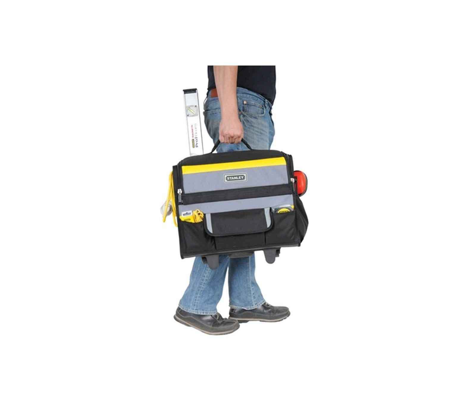 De Stanley Nylon gereedschapstas met wielen (1-97-515) is een praktische oplossing voor het vervoeren van gereedschap. Gebruikers prijzen de duurzaamheid en het handige ontwerp, vooral met de wielen die het gemakkelijk maken om de tas te dragen, zelfs als deze vol is. De tas biedt voldoende opbergruimte en is ontworpen om een breed scala aan gereedschappen te herbergen.