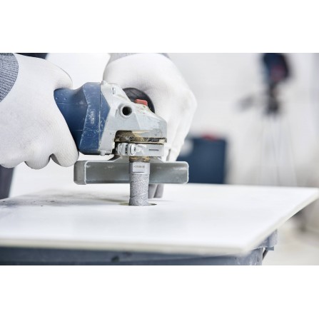 - De diamantboor is bijzonder effectief voor snelle en veilige boring in harde materialen zoals tegels en beton.