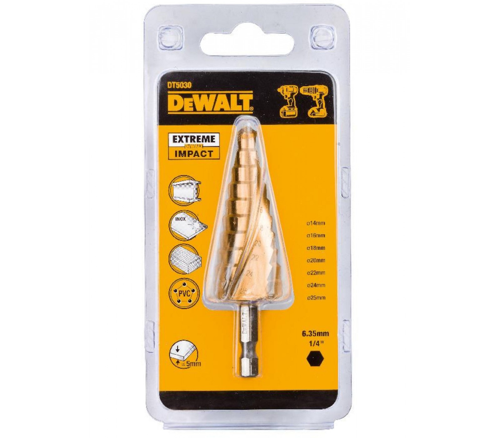 Dewalt pakopinis grąžtas DT5030-QZ, 14-25 mm