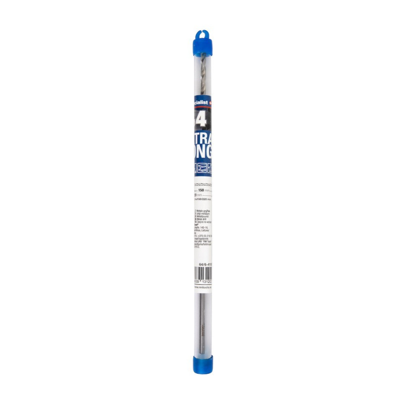 De Specialist+ DIN1869 met. gr. 4x150/220mm is een krachtige boor gemaakt van hoogwaardig M2 staal, wat zorgt voor duurzaamheid en stevigheid. Met een boorpunt van 118° is het zeer gebruiksvriendelijk voor het boren in ronde oppervlakken. Het is daarnaast ideaal voor het boren in verschillende materialen zoals metaal, hout en plastic, en is perfect voor het maken van diepe gaten.