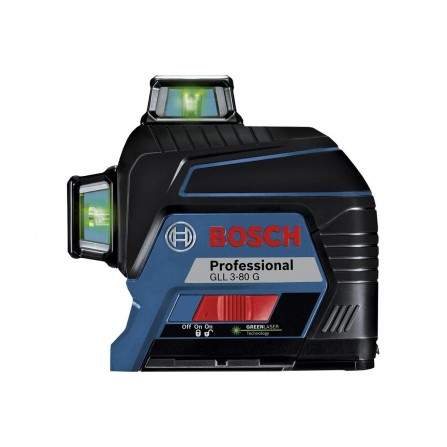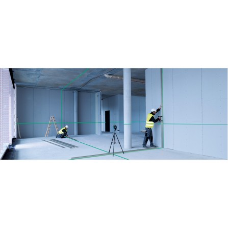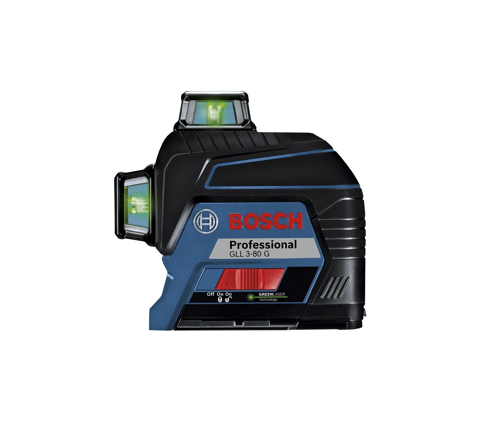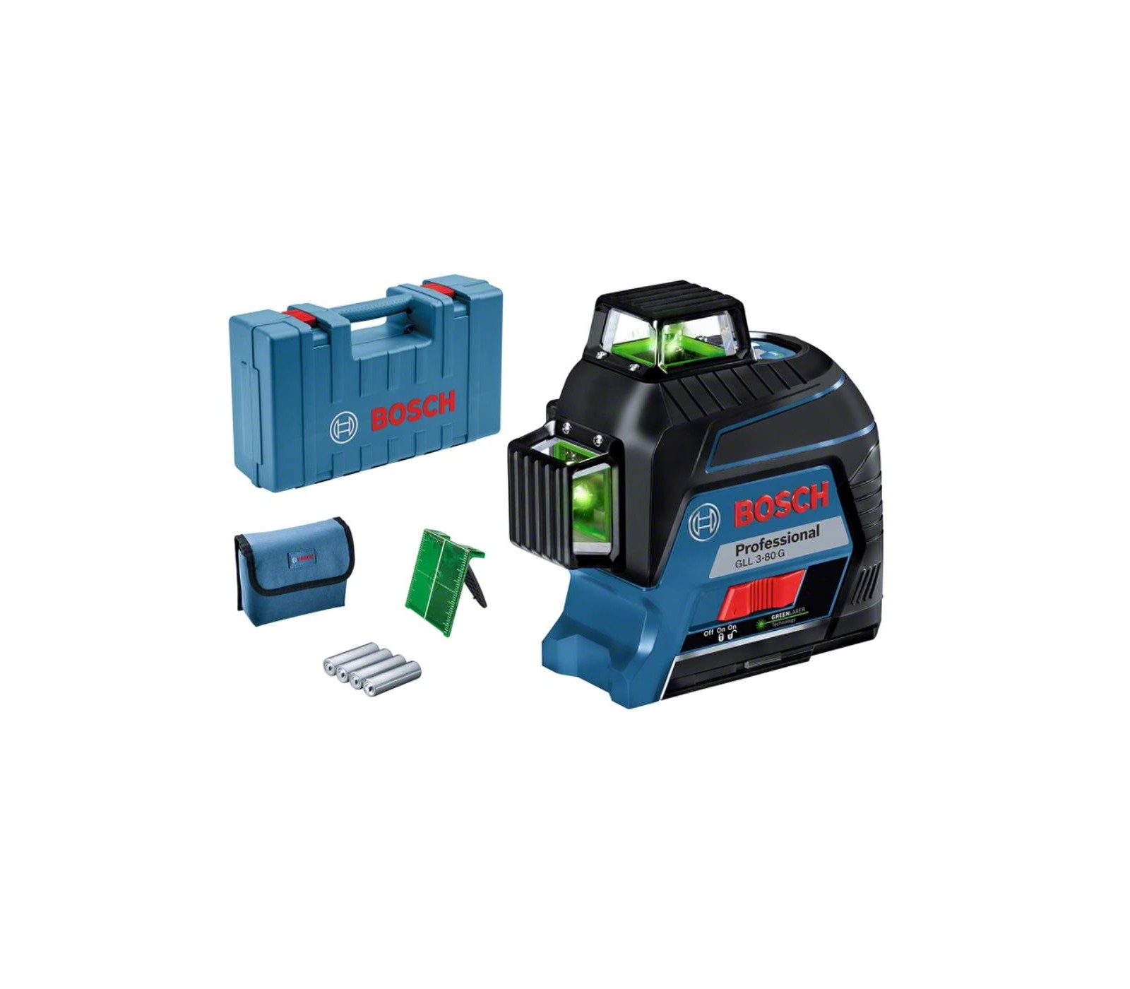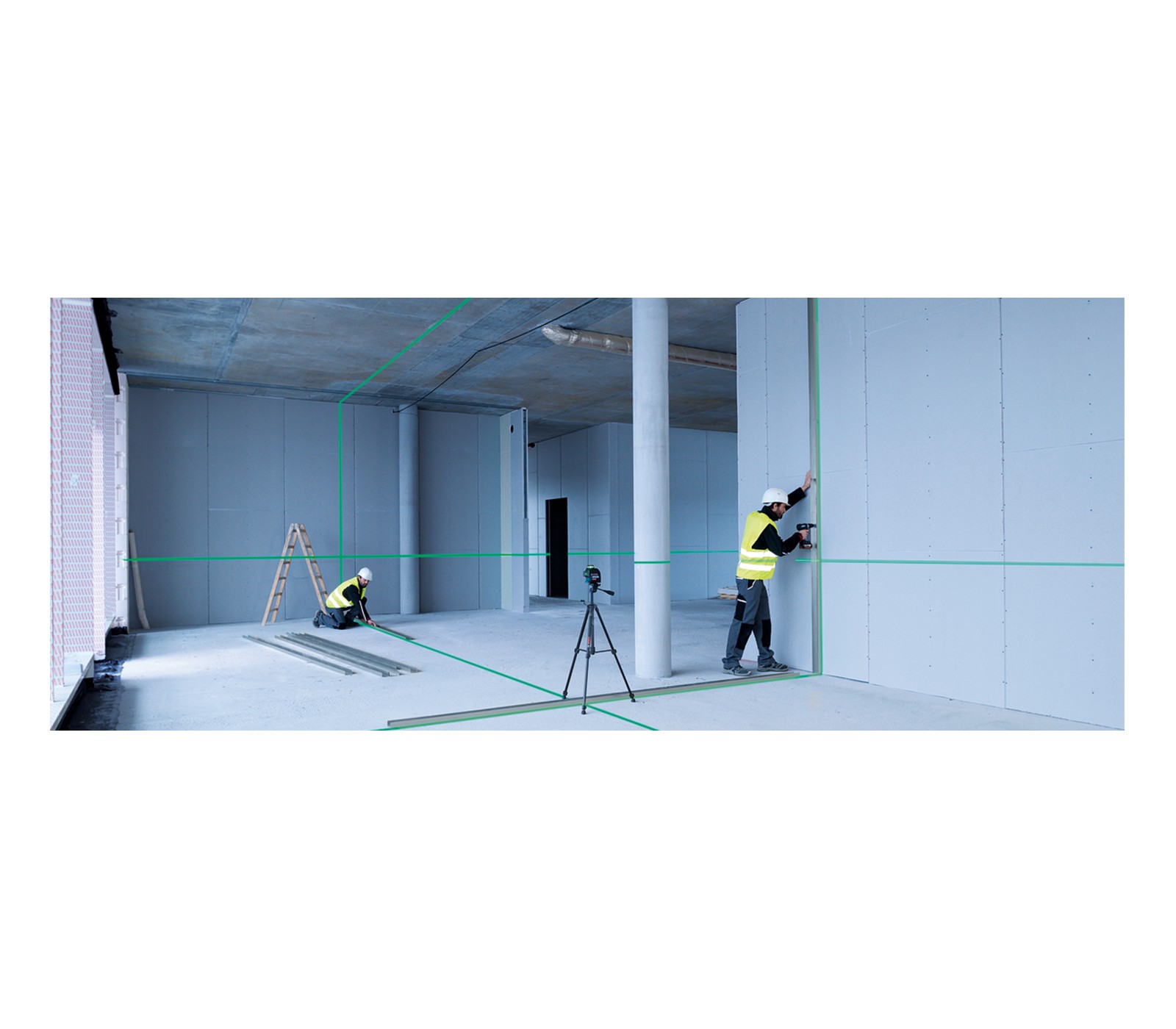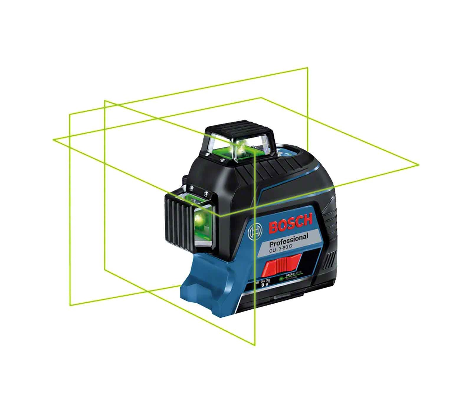 De Bosch GLL 3-80 G projecteert 3 x 360° heldergroene lijnen die vier keer beter zichtbaar zijn dan rode. Perfect voor horizontale en verticale nivellering door de hele kamer. Zelfnivellerend in 4 sec. (±4°), nauwkeurigheid ±0,3 mm/m, bereik tot 120 m met ontvanger. Eenvoudige bediening en robuust ontwerp.