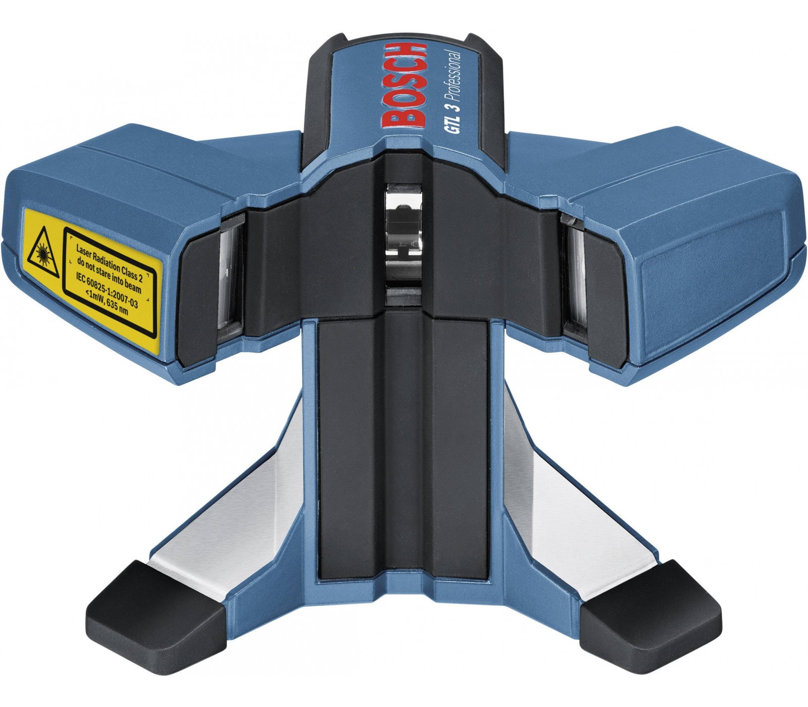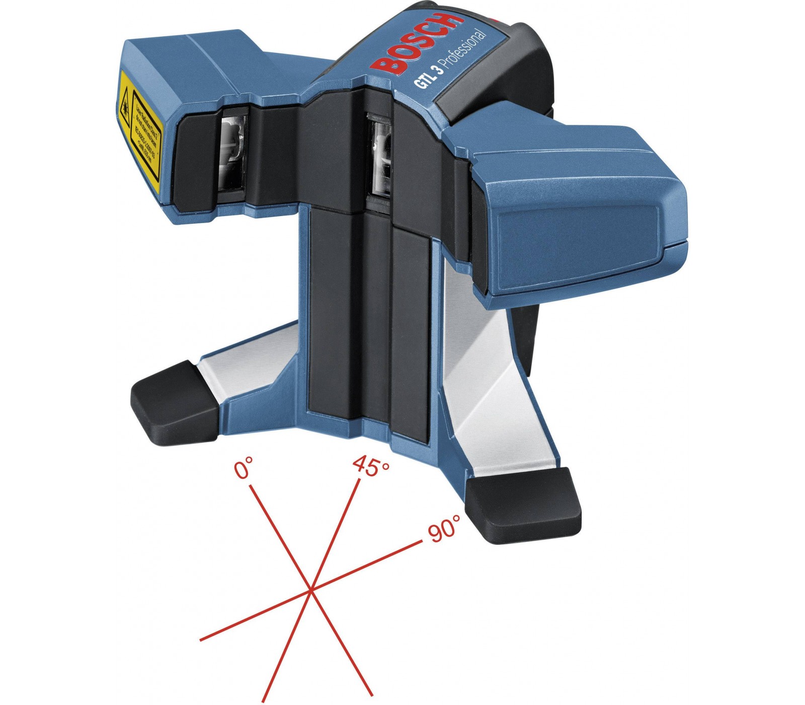 Bosch GTL 3 kryžminis lazeris kloja dvi 90° linijas ir papildomą 45° liniją, leidžiančią greitai ir tiksliai kloti plyteles ant grindų ar sienų. Tikslumas – ±0,2 mm/m. Kompaktiškas, lengvas (0,44 kg), atsparus dulkėms ir drėgmei (IP54). Veikia iki 18 val. su 4 AA baterijomis. Komplekte – reikalingi priedai.