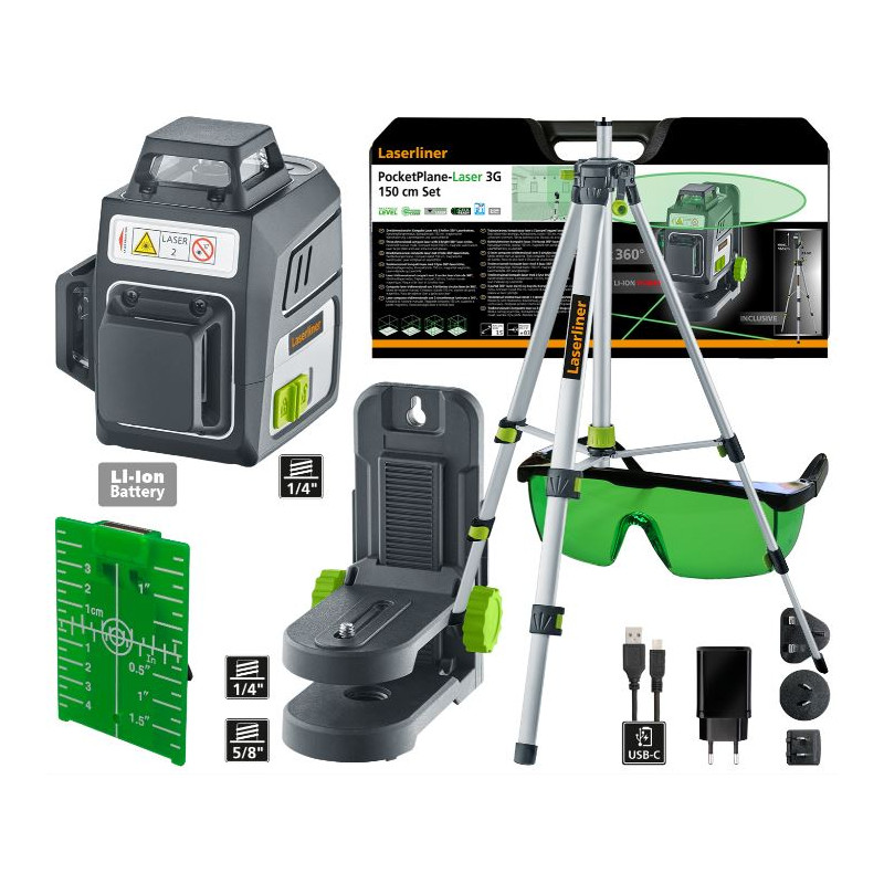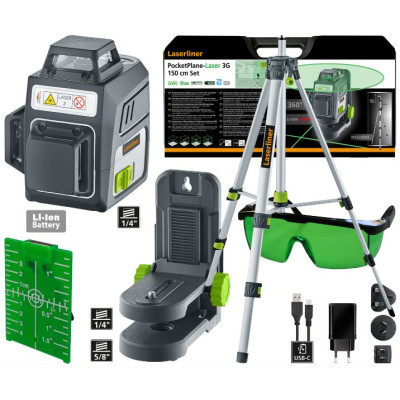 Laserliner skersinių linijų nivelyras PocketCross 3G su trikoju ir priedais