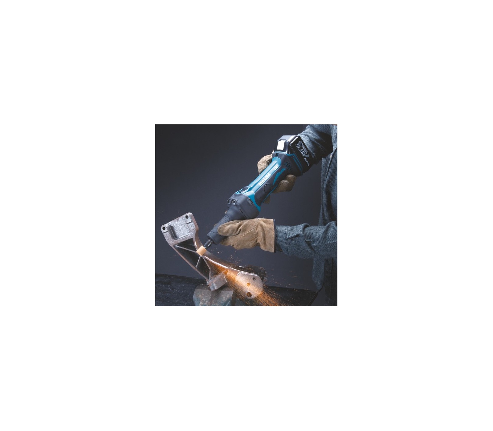 Makita DGD800Z – universalus 18 V akumuliatorinis tiesinis šlifuoklis, skirtas metalo ir kitų medžiagų šlifavimui.