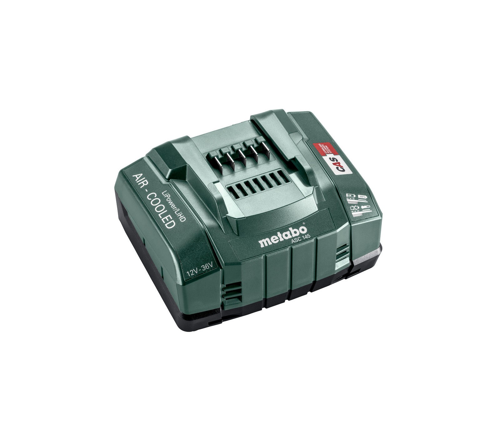 Metabo ASC 145 – greitas oro aušinimo įkroviklis 12–36 V Li-ion akumuliatoriams. Įkrauna iki 4 kartų greičiau nei standartinis įkroviklis. AIR COOLED technologija aušina akumuliatorių įkrovimo metu, trumpindama laiką ir didindama tarnavimo trukmę. Tinka visiems Metabo ir CAS sistemų akumuliatoriams. 3 metų garantija.
