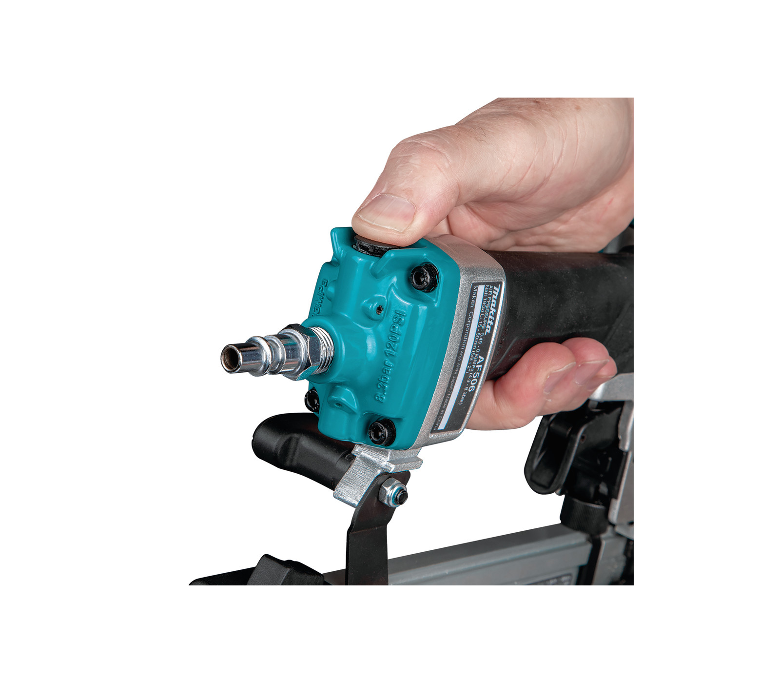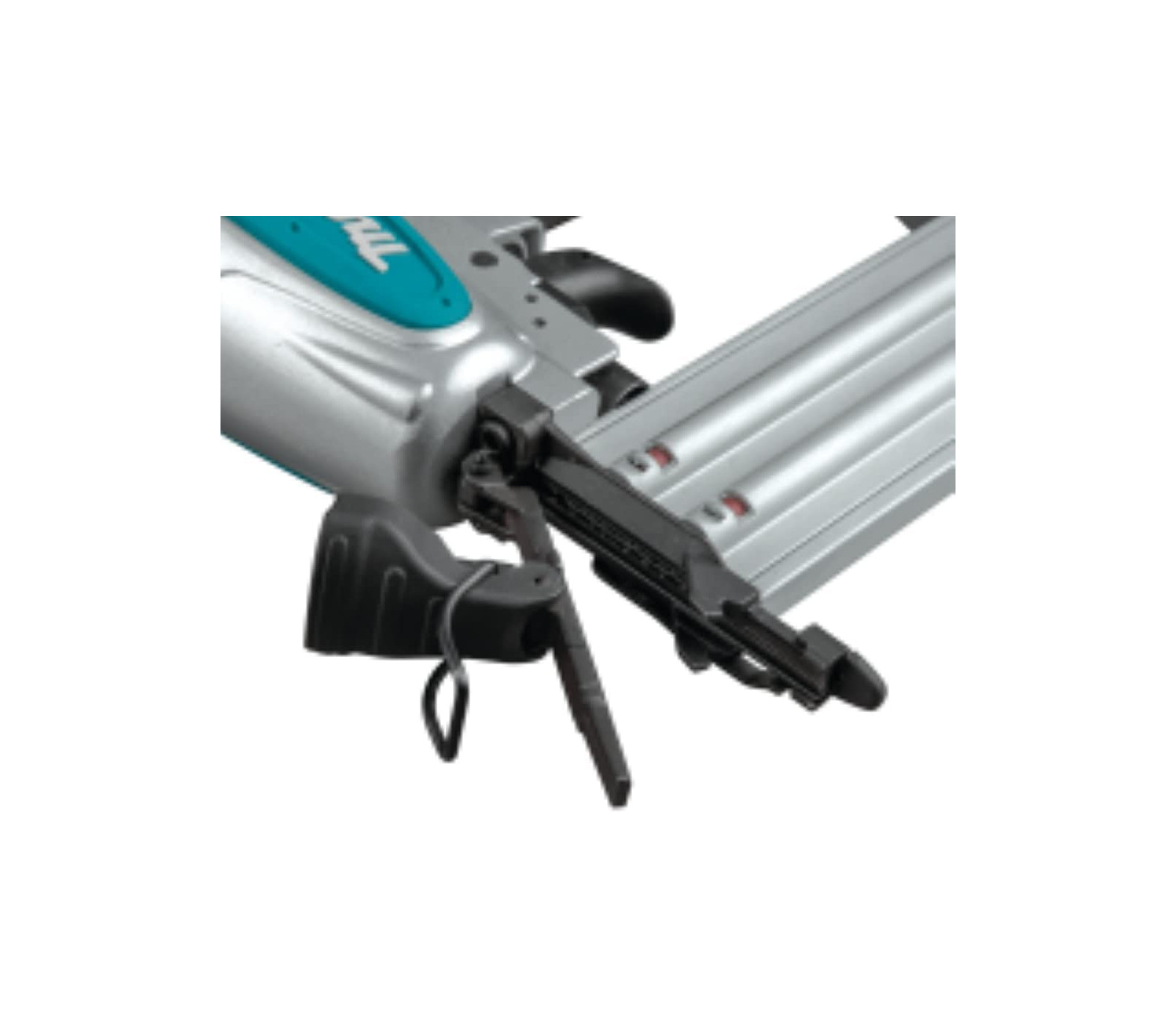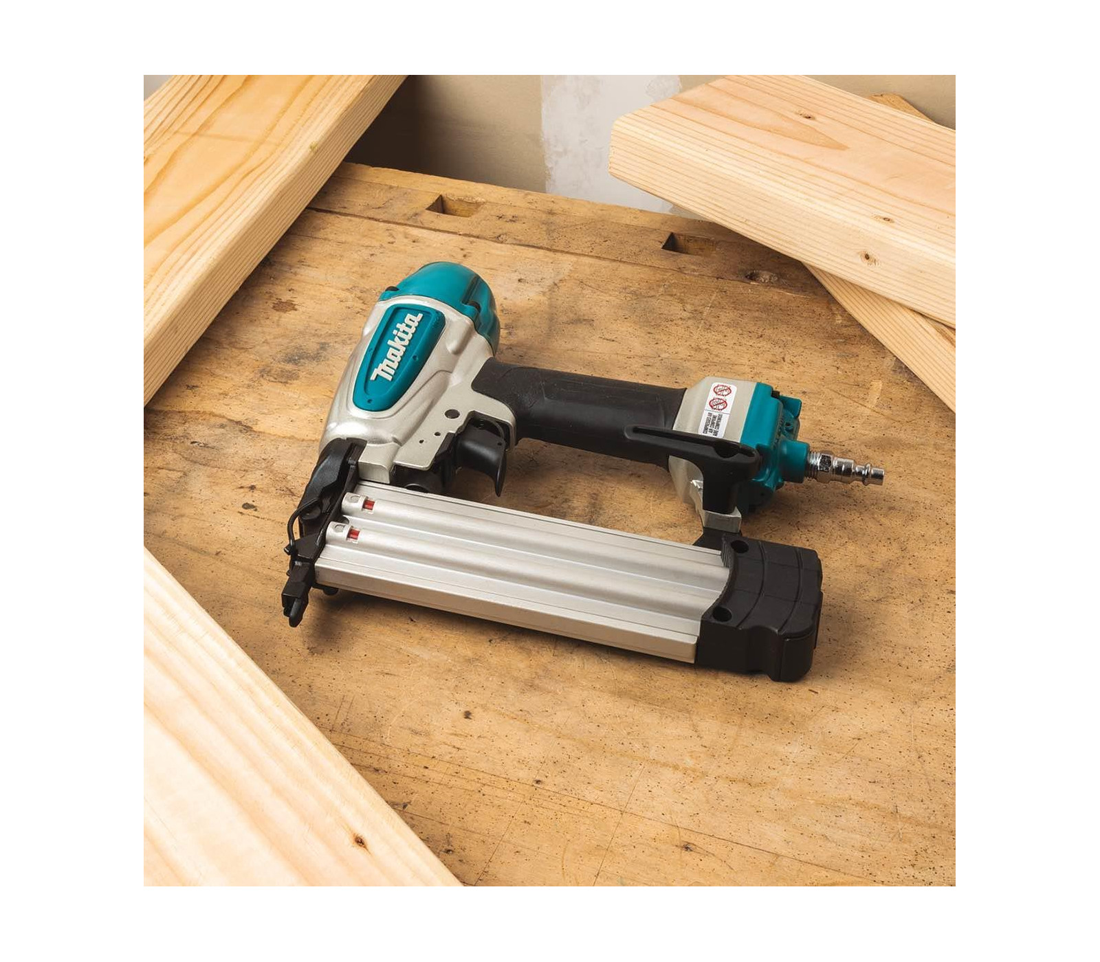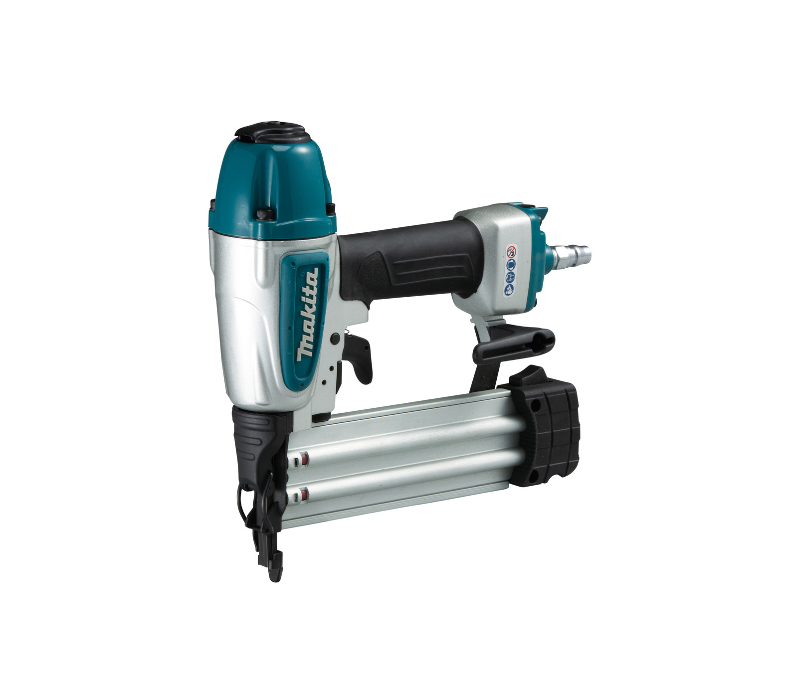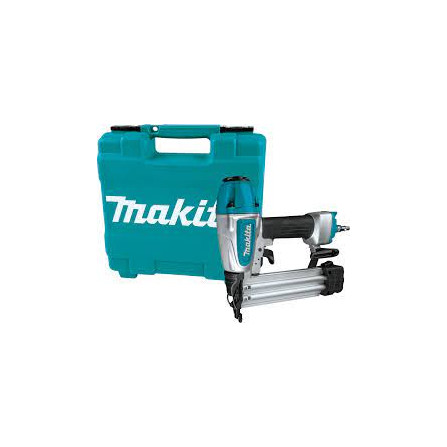 De Makita AF506 is een pneumatische brad tacker, ideaal voor fijn timmerwerk, afwerking en meubels. Geschikt voor 18 Ga spijkers (15–50 mm), werkdruk 60–115 PSI. Met gereedschapsloze diepte-instelling, vastgelopen spijkerverwijdering en 360° verstelbare uitlaat. Wordt geleverd met een kunststof koffer.