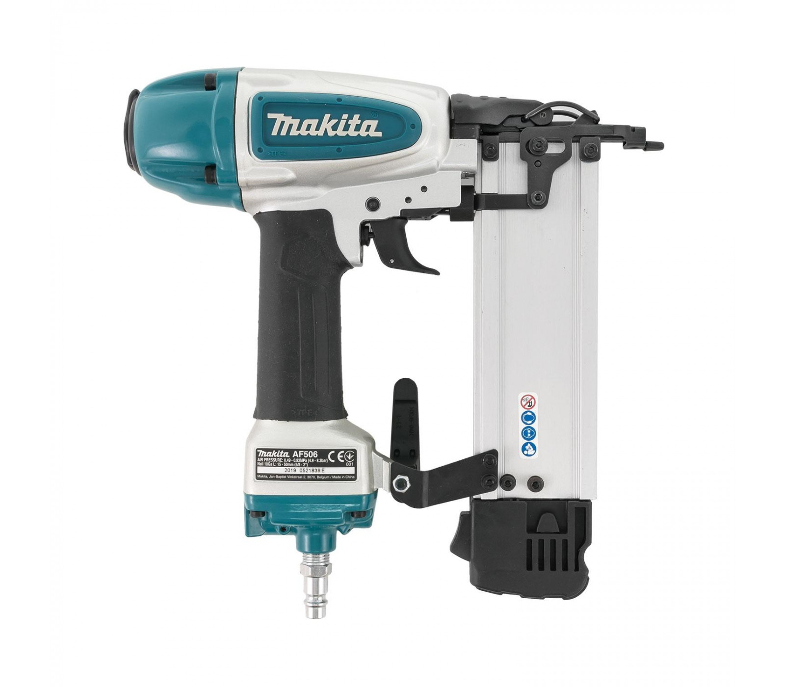 Makita AF506 – tai pneumatinis viniakalė, skirta tiksliam darbui su mediena, apdaila ir baldų gamyba. Naudoja 18 Ga vinis (15–50 mm), veikia esant 60–115 PSI slėgiui, turi gylio reguliavimą be įrankių, užstrigusių vinių šalinimo funkciją ir 360° išmetimo angos reguliavimą. Lengvas ir patikimas. Komplekte – plastikinis dėklas.