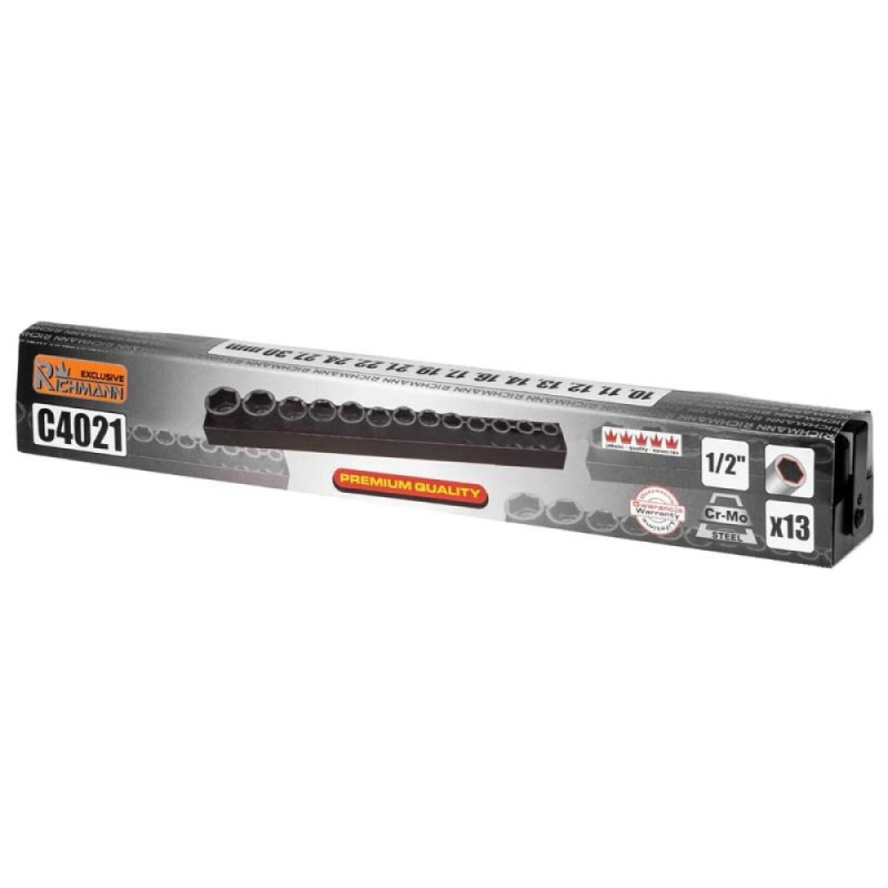 De "Smūg. galvučių rinkinys C4021, 13 vnt." is een set van dertien schroefkoppen van 10 tot 30 mm, vervaardigd uit chroom-molybdeen staal (Cr-Mo). De set omvat verschillende maten, wat zorgt voor veelzijdigheid en efficiëntie in gebruik. De metalen verpakking biedt extra bescherming voor de accessoires.