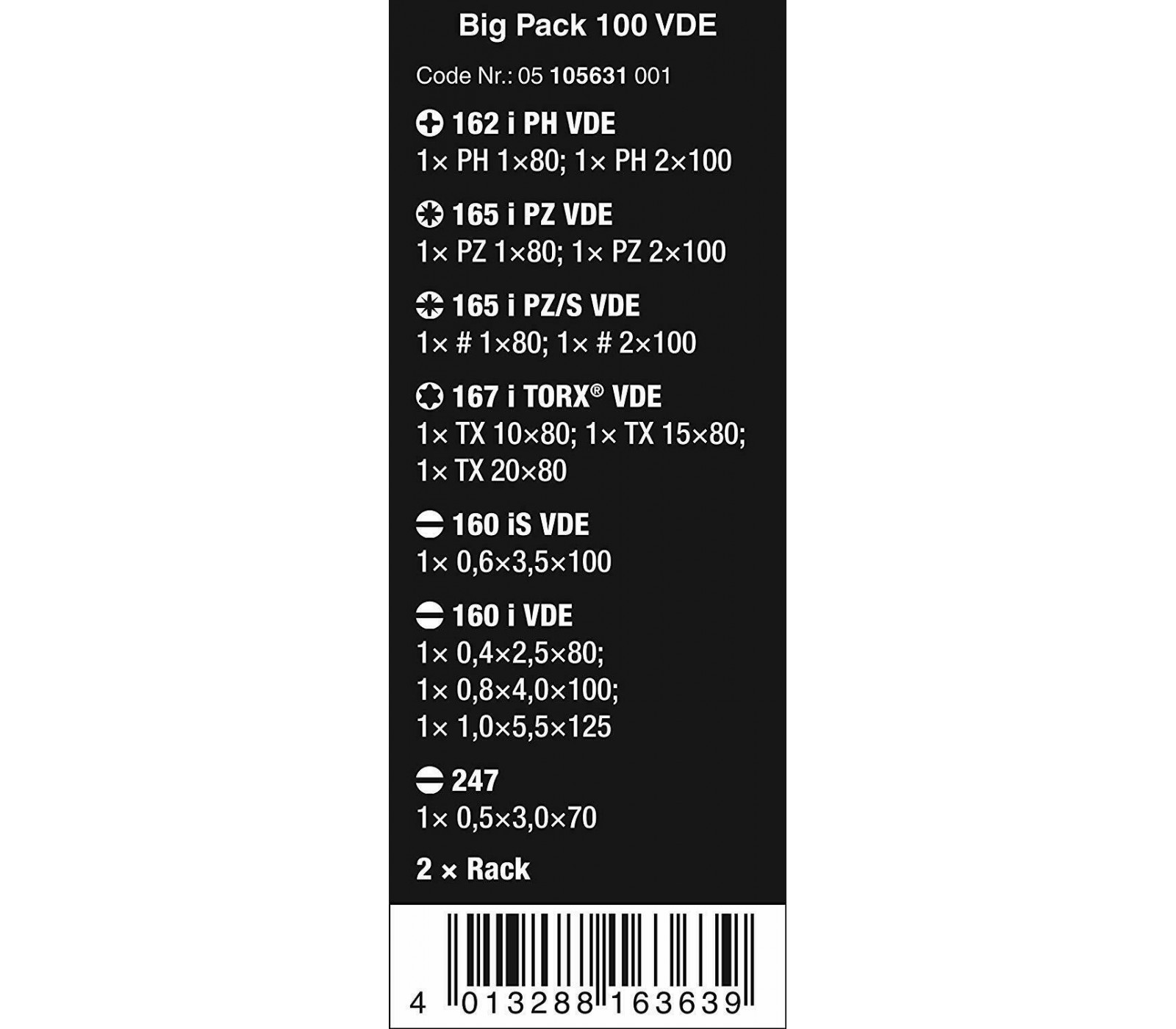 Wera atsuktuvų rinkinys Kraftform Big Pack 100 VDE (05105631001), 14 vnt.
