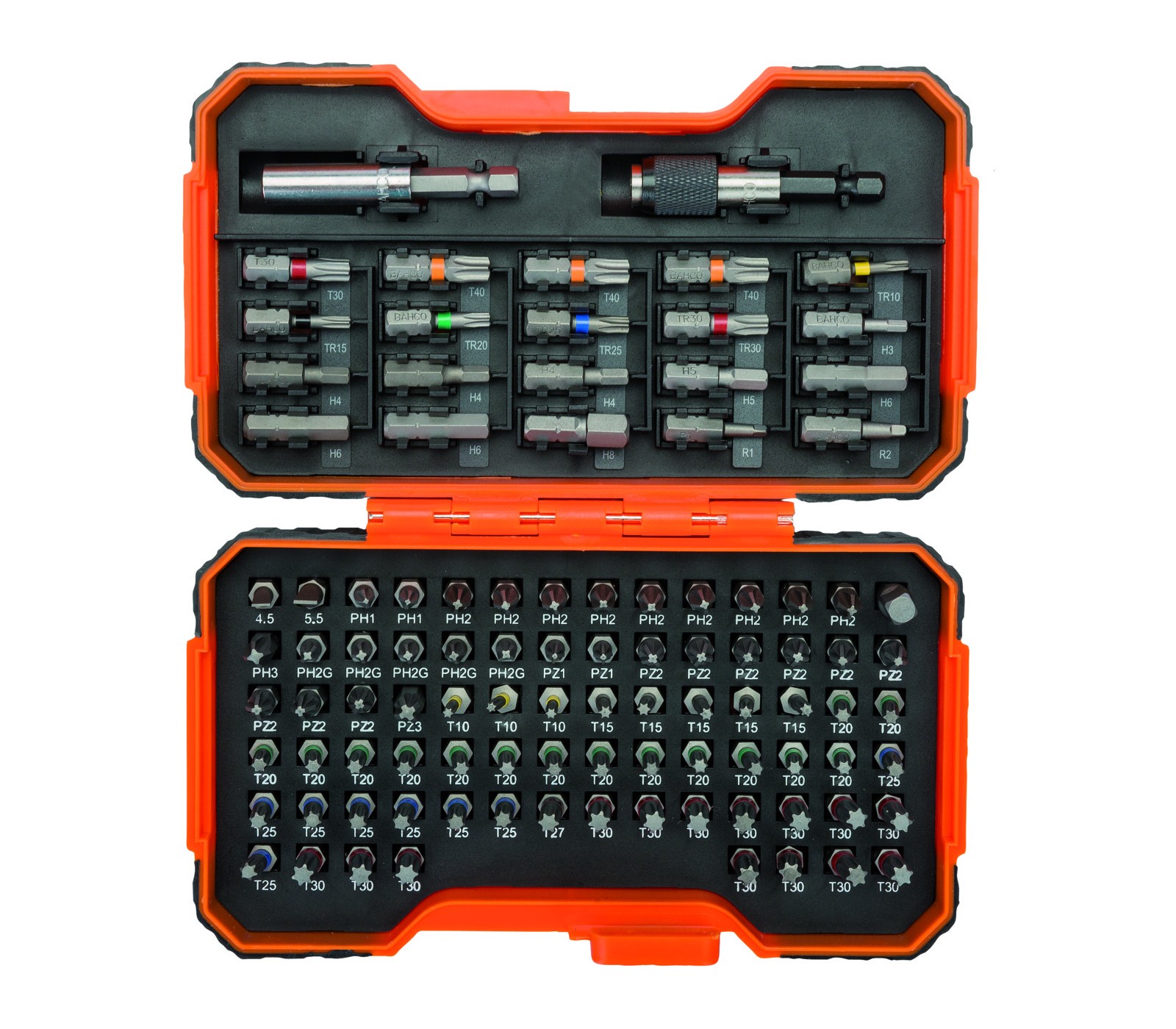 TORX®-bits: T10 x3, T15 x5, T20 x15, T25 x8, T27, T30 x15, T40 x3,