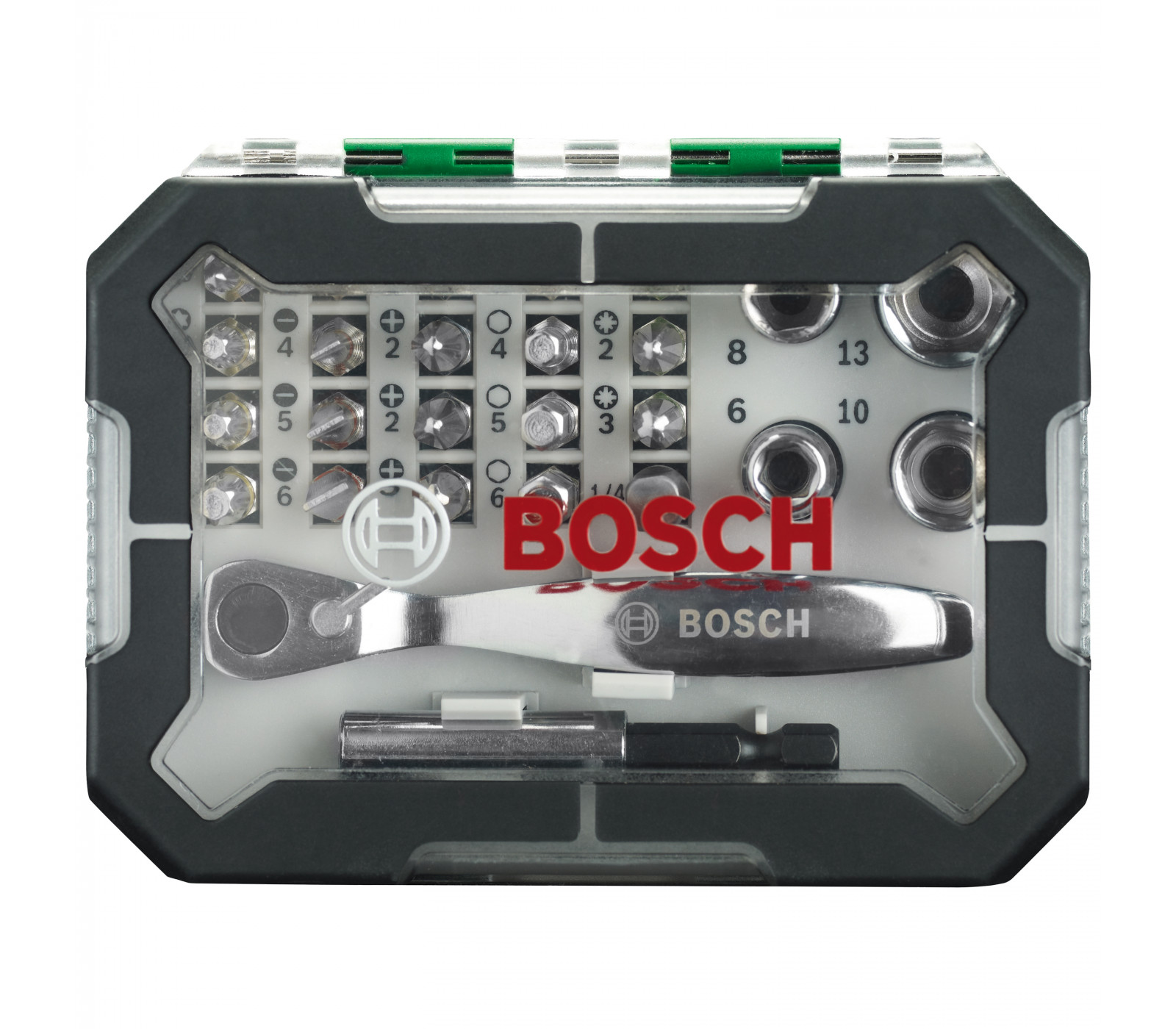 Bosch sukimo antgalių, galvučių ir terkšlės rinkinys, 26 vnt.