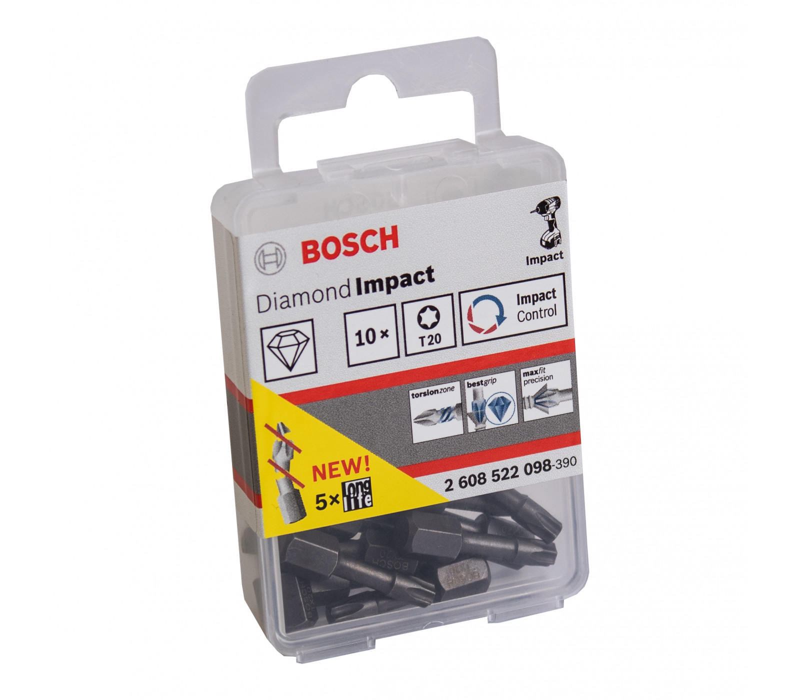 Bosch sukimo antgalių rinkinys Diamond Impact, 10 vnt, T20, 25 mm