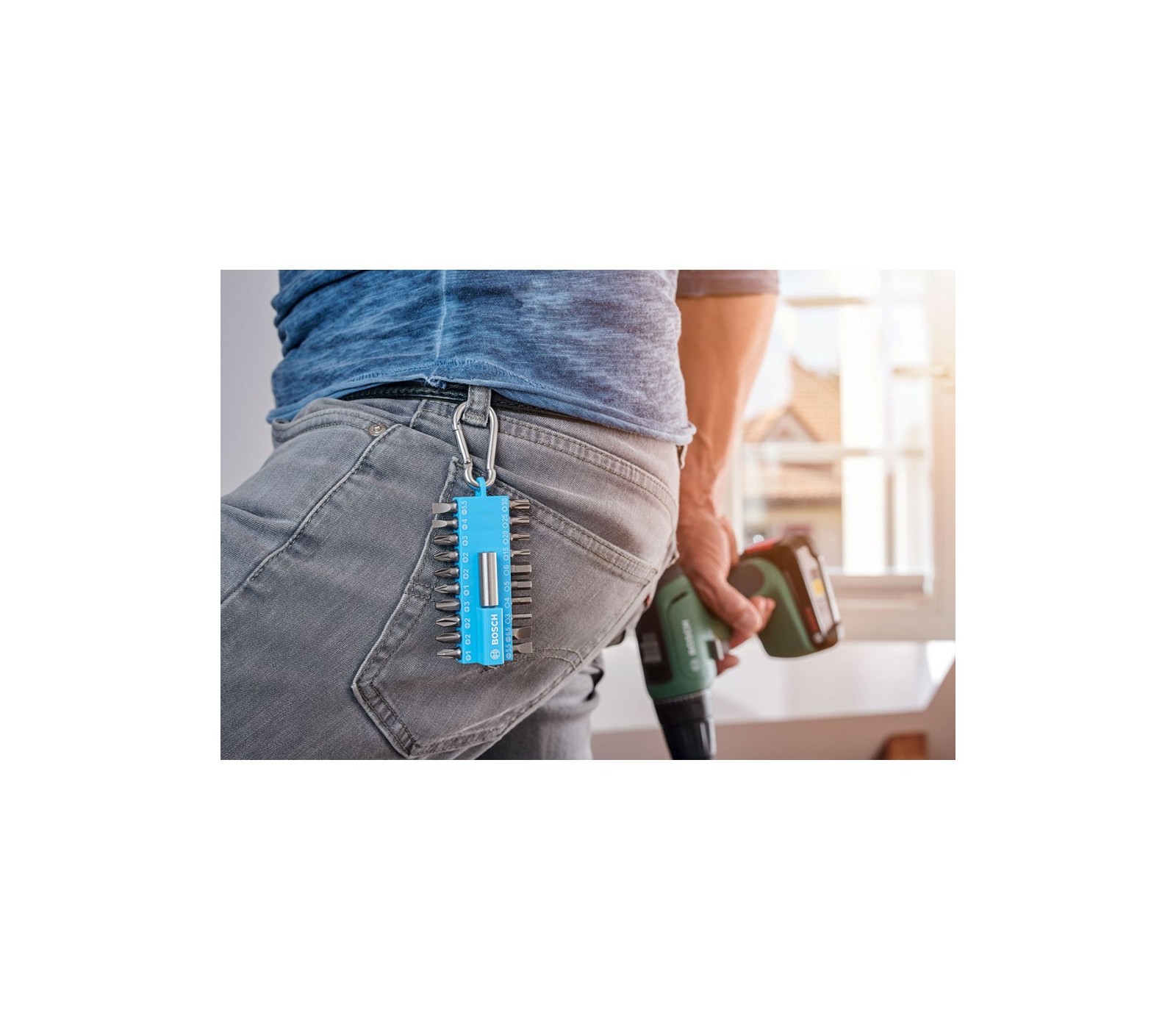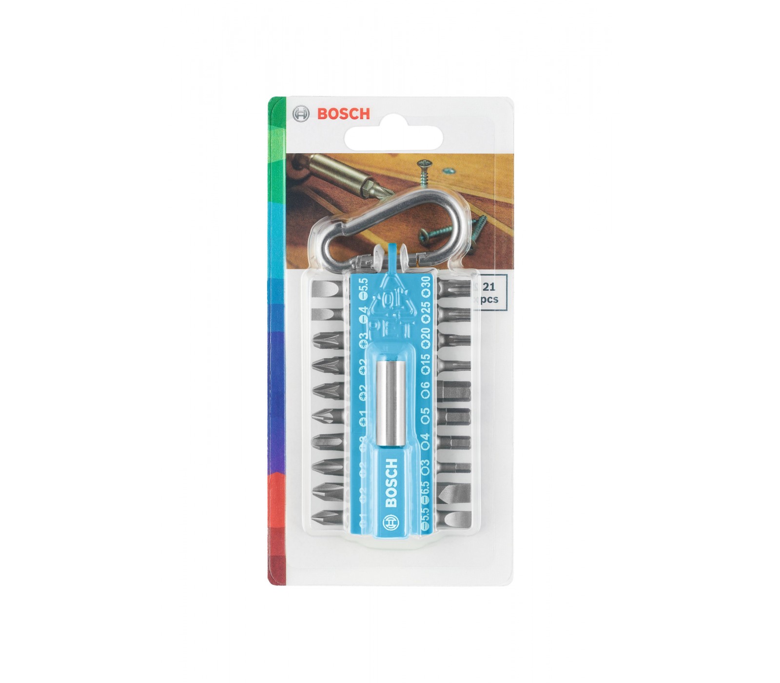Bosch sukimo antgalių rinkinys su karabinu mėlynos spalvos, 21 vnt.